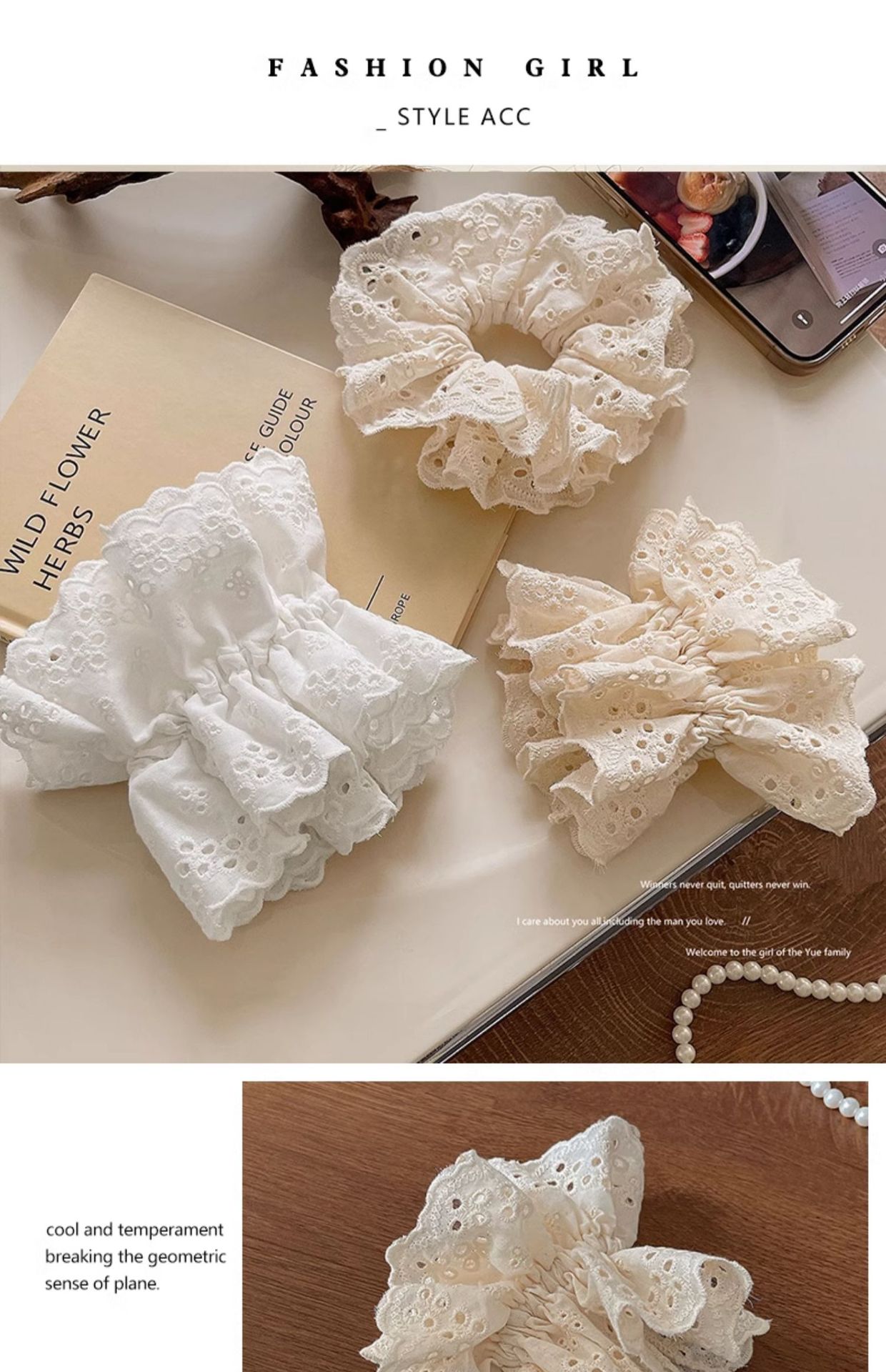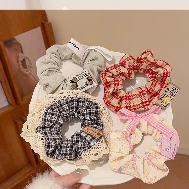 新款赵露思同款蕾丝大肠发圈早春百搭毛绒头绳女可爱少女皮筋发饰