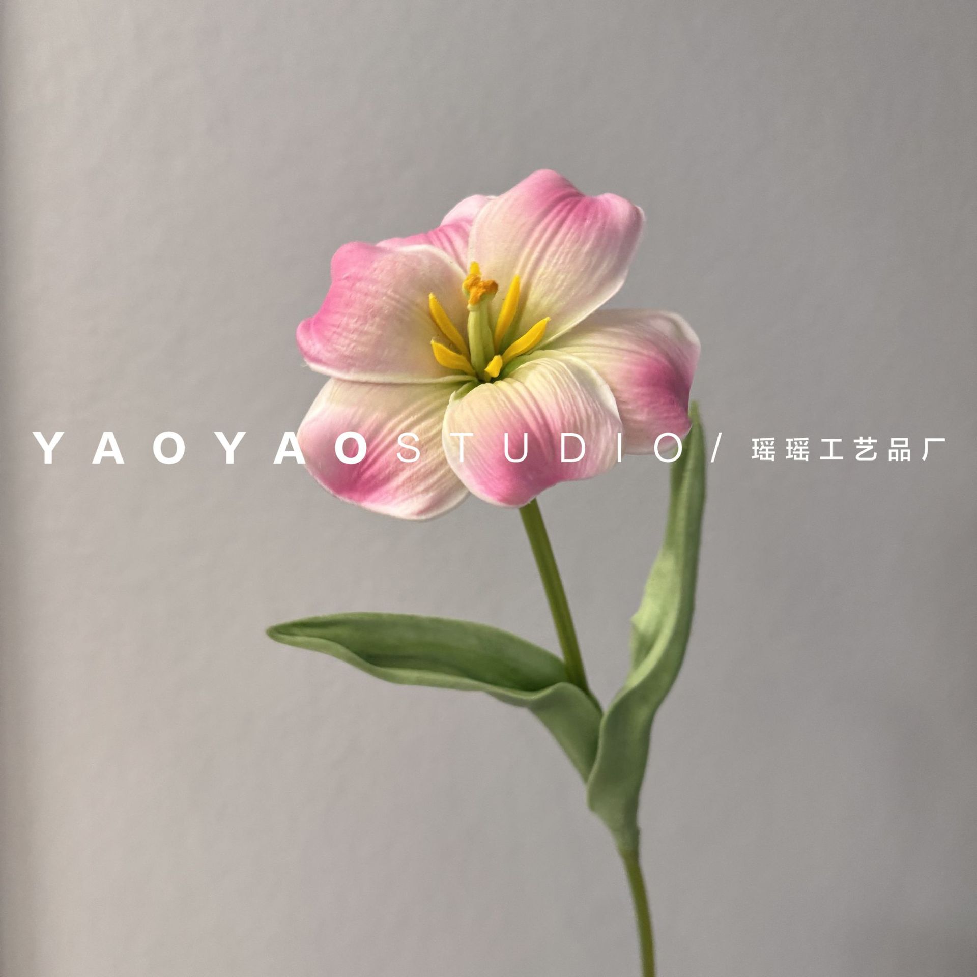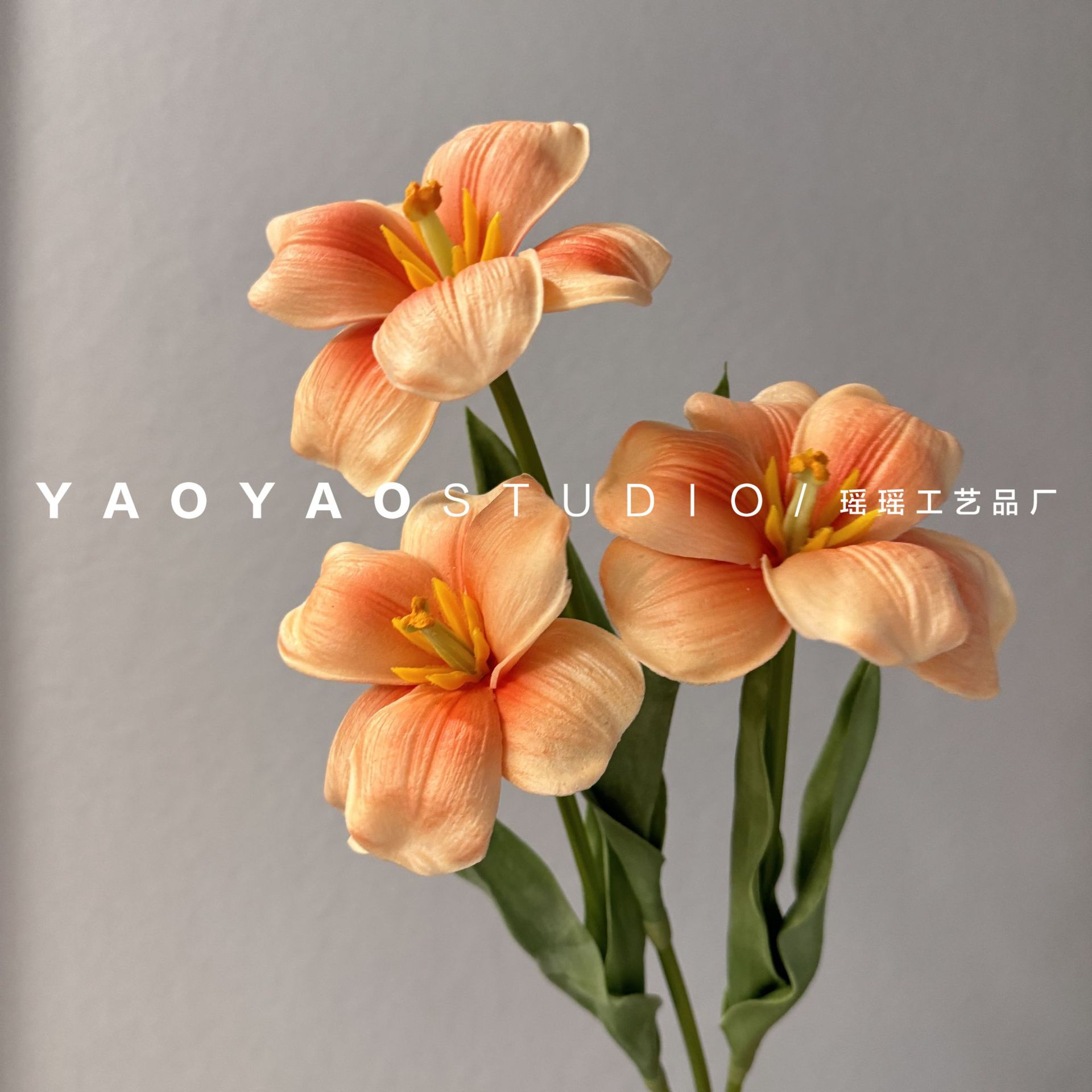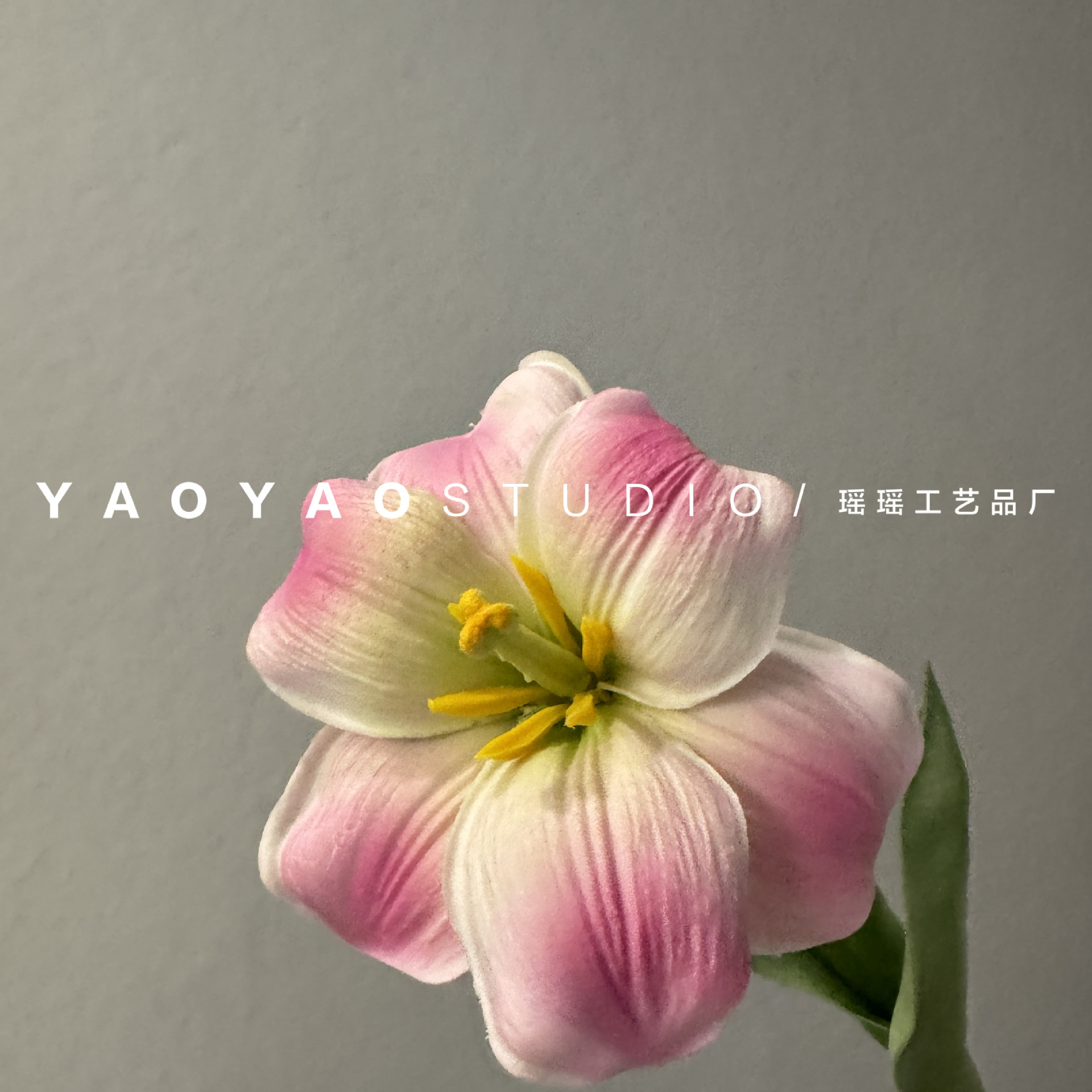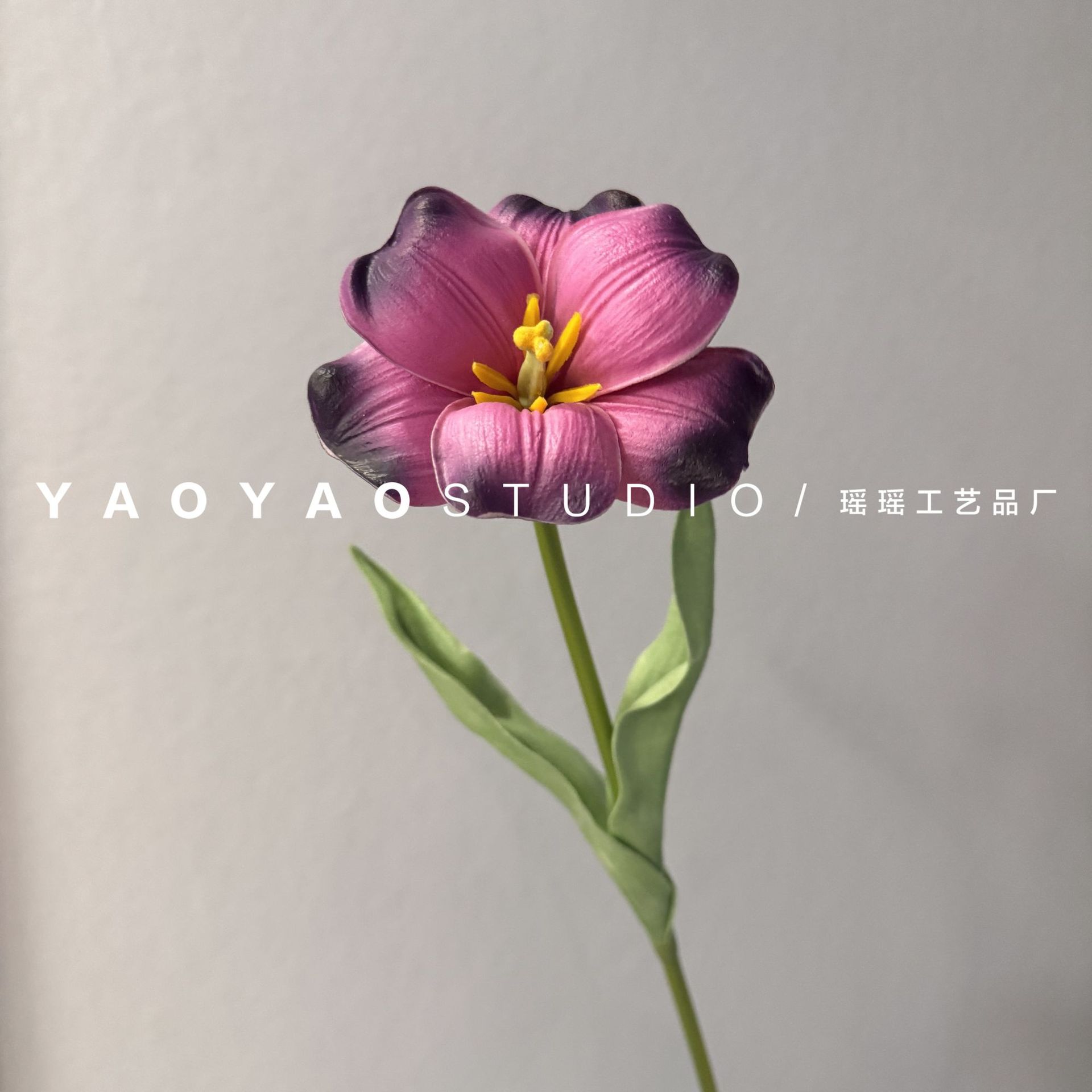 开口笑郁金香 PU手感布朗尼郁金香仿真花材 婚庆花艺摄影道具假花