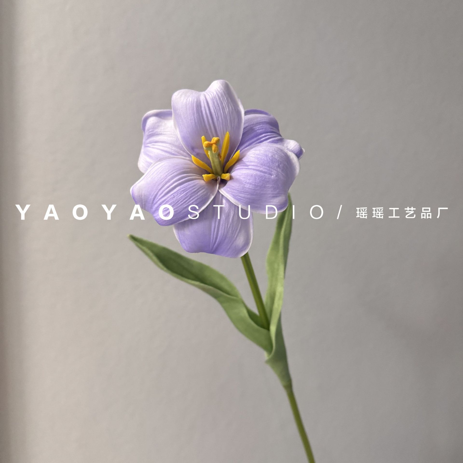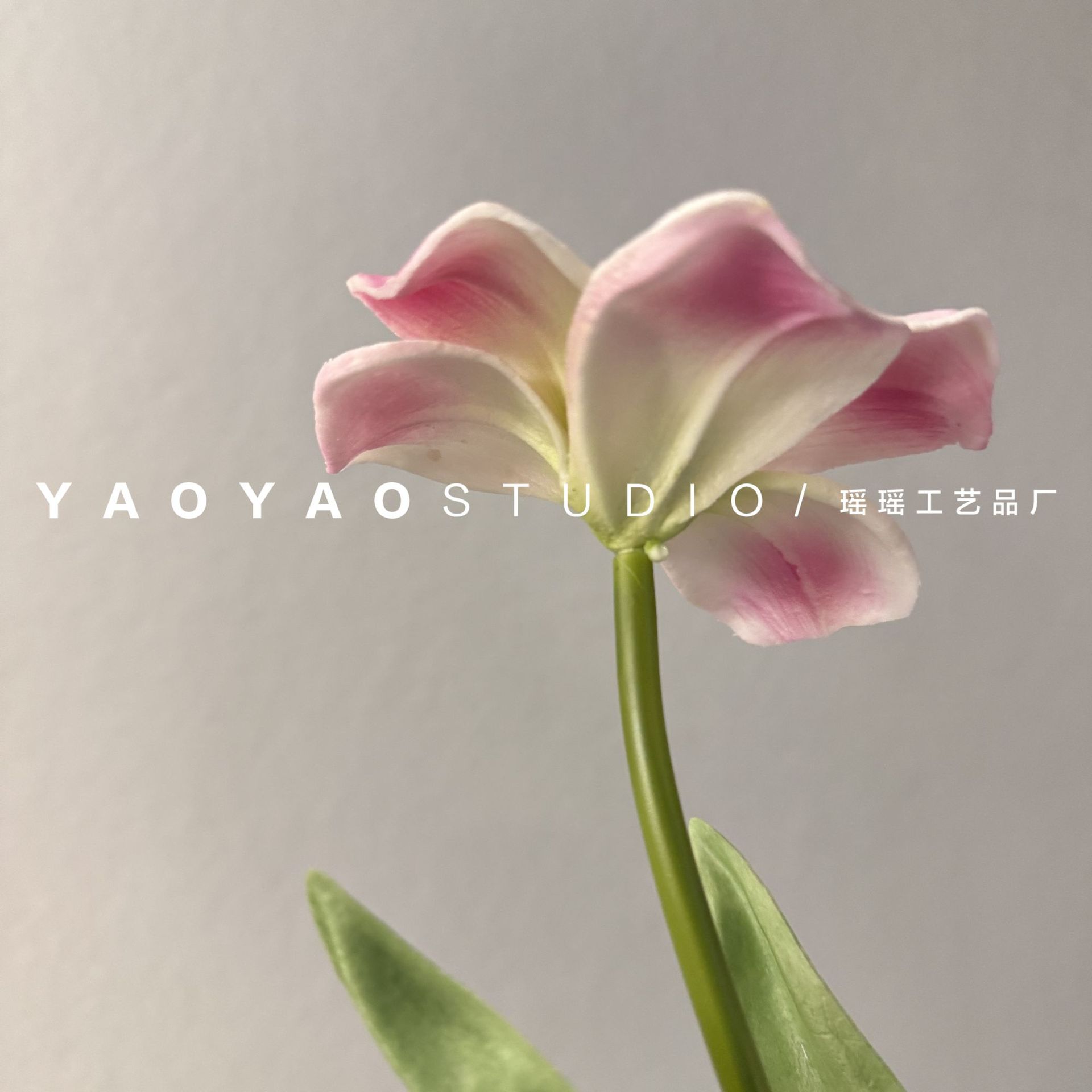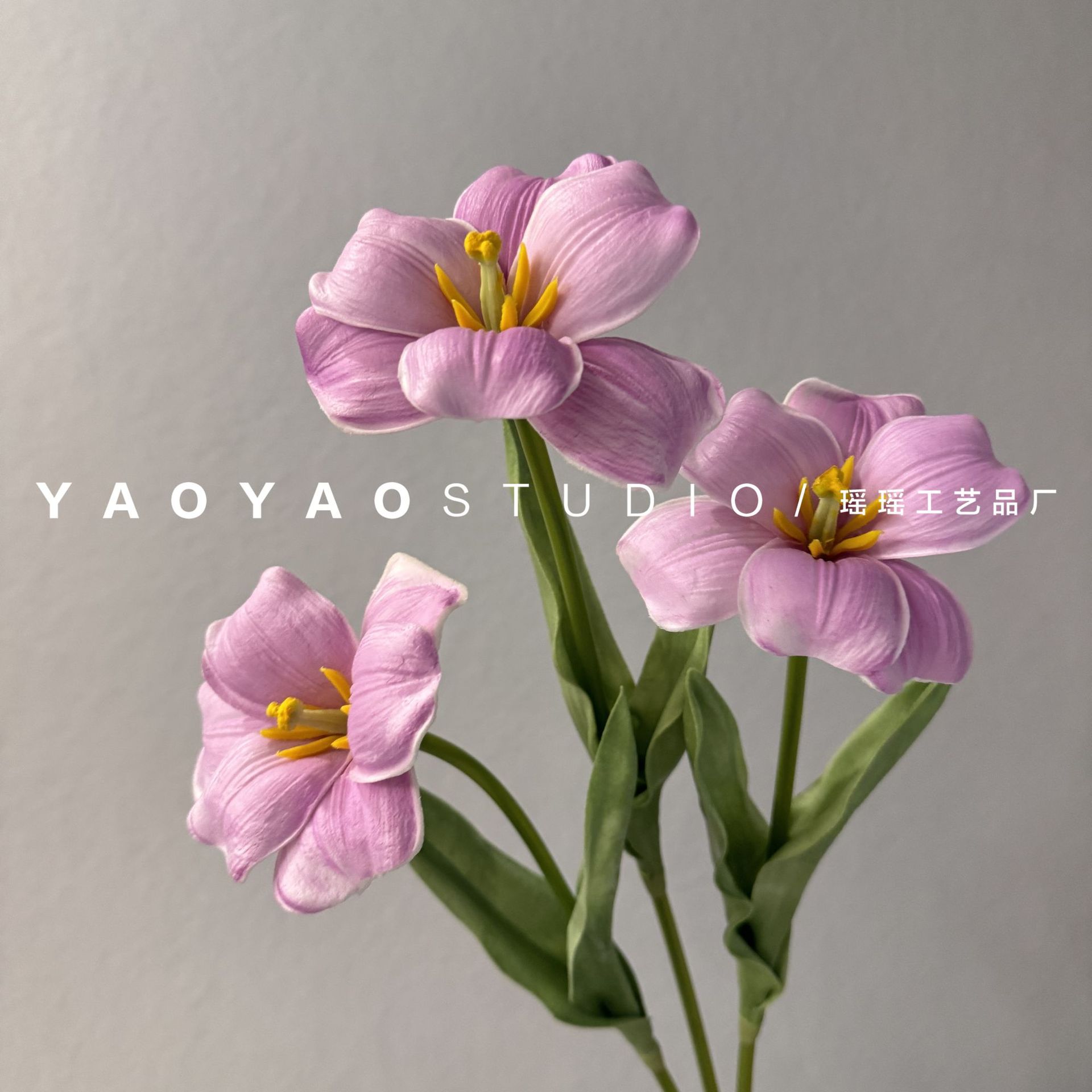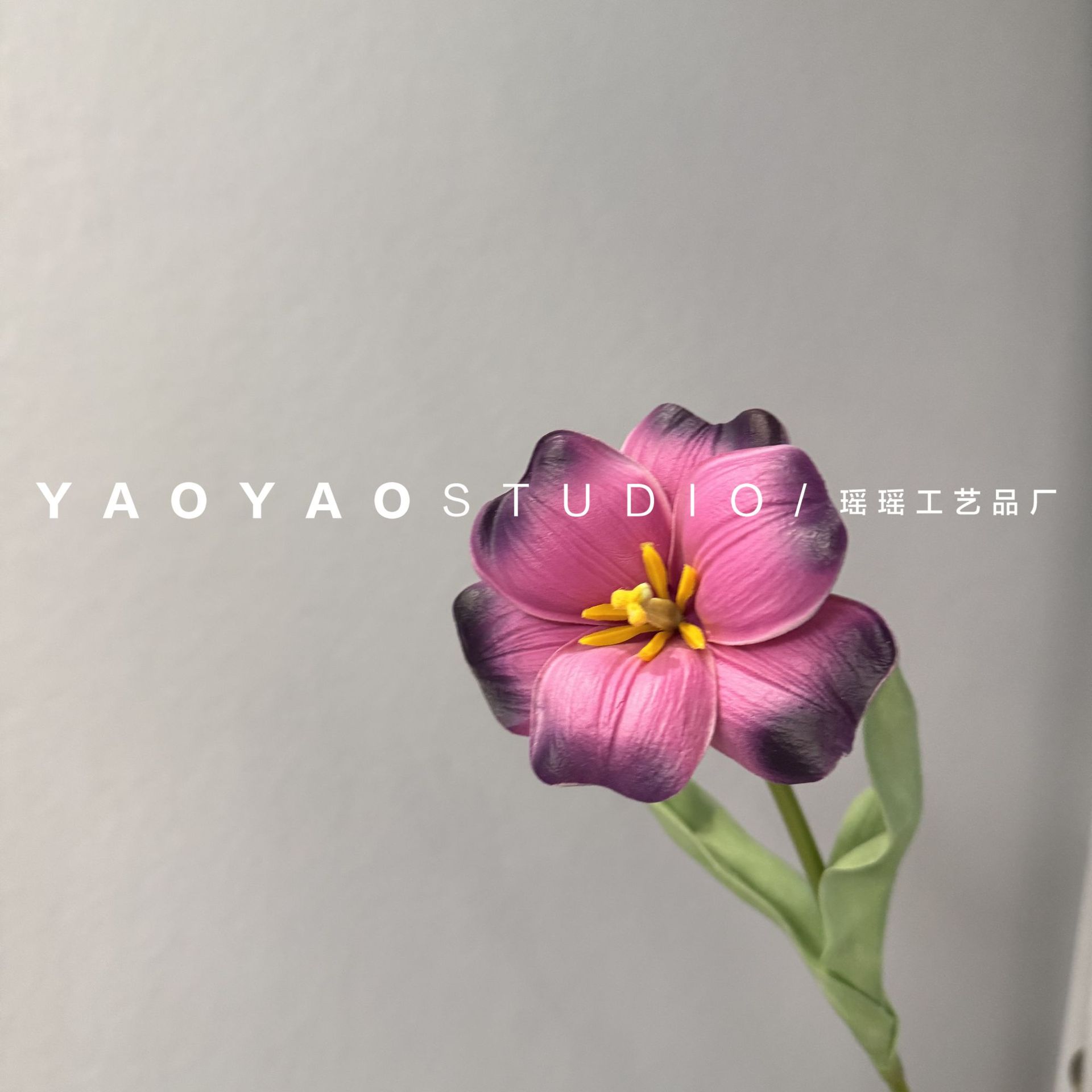 开口笑郁金香 PU手感布朗尼郁金香仿真花材 婚庆花艺摄影道具假花