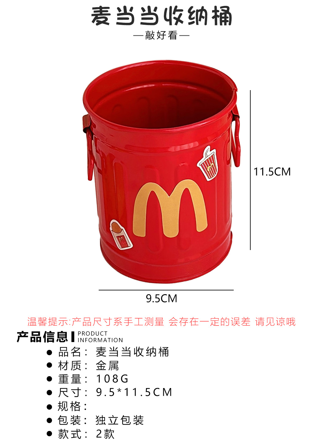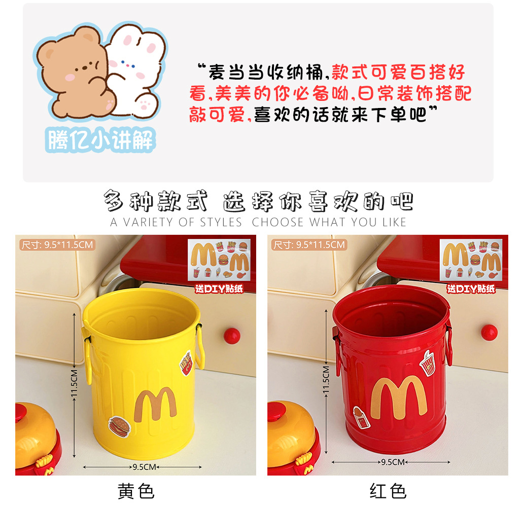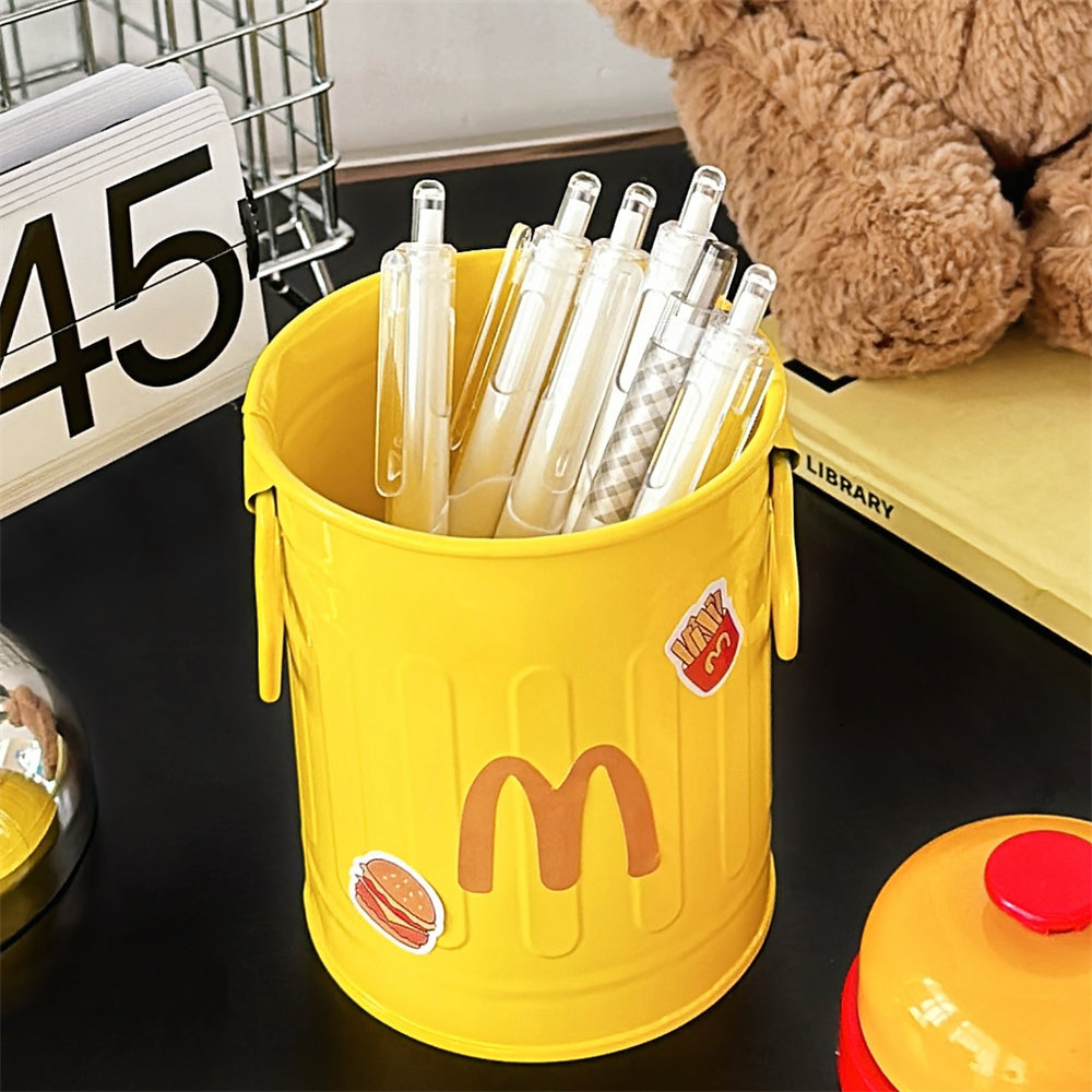 美式复古麦当当高颜值笔筒创意收纳桶铁艺简约风可爱办公室收纳盒