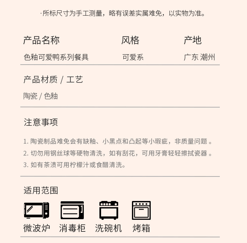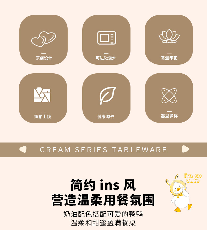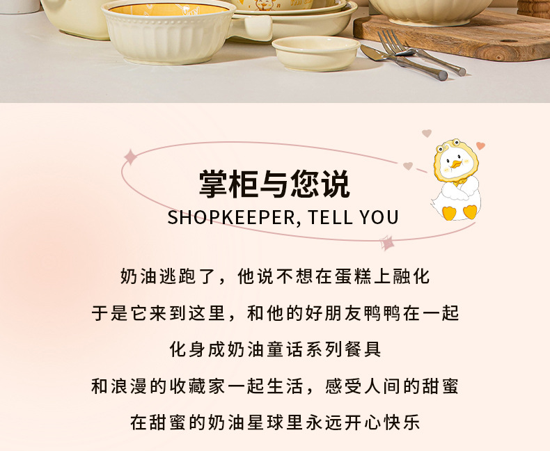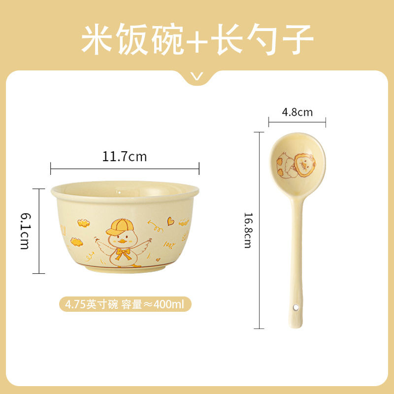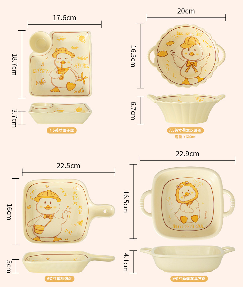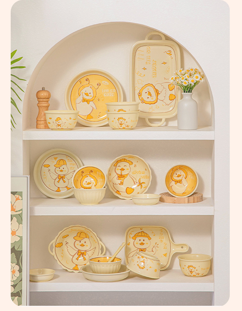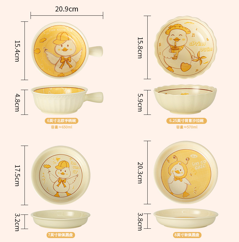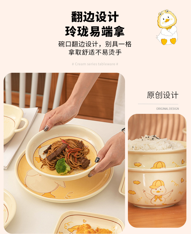 网红高颜值可爱鸭盘子陶瓷碗卡通萌趣风釉下彩陶瓷餐具碗具套装