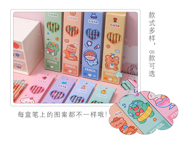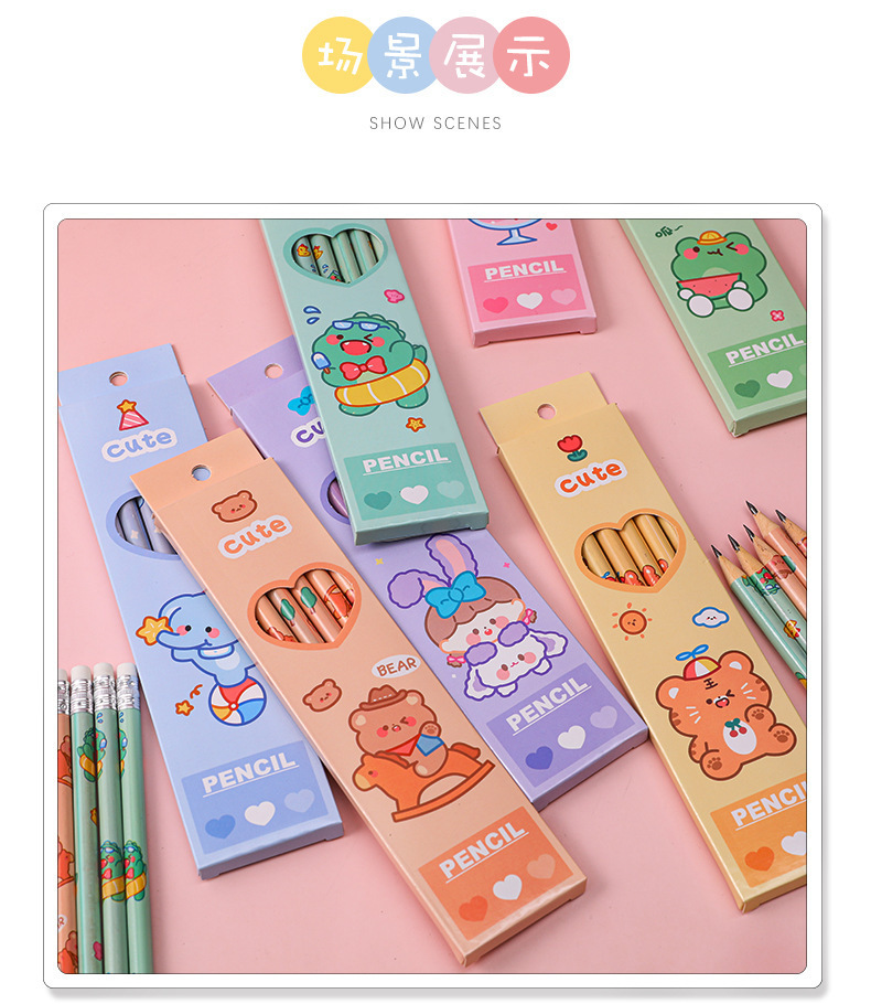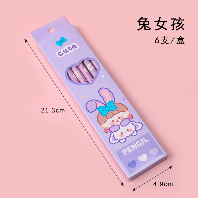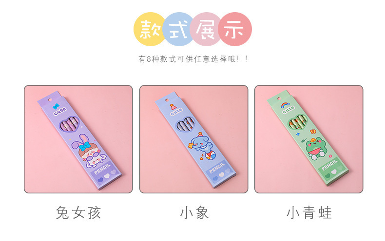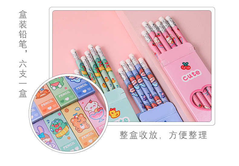 6支盒装铅笔可爱卡通HB铅笔儿童小学生专用彩铅书写文具用品批发