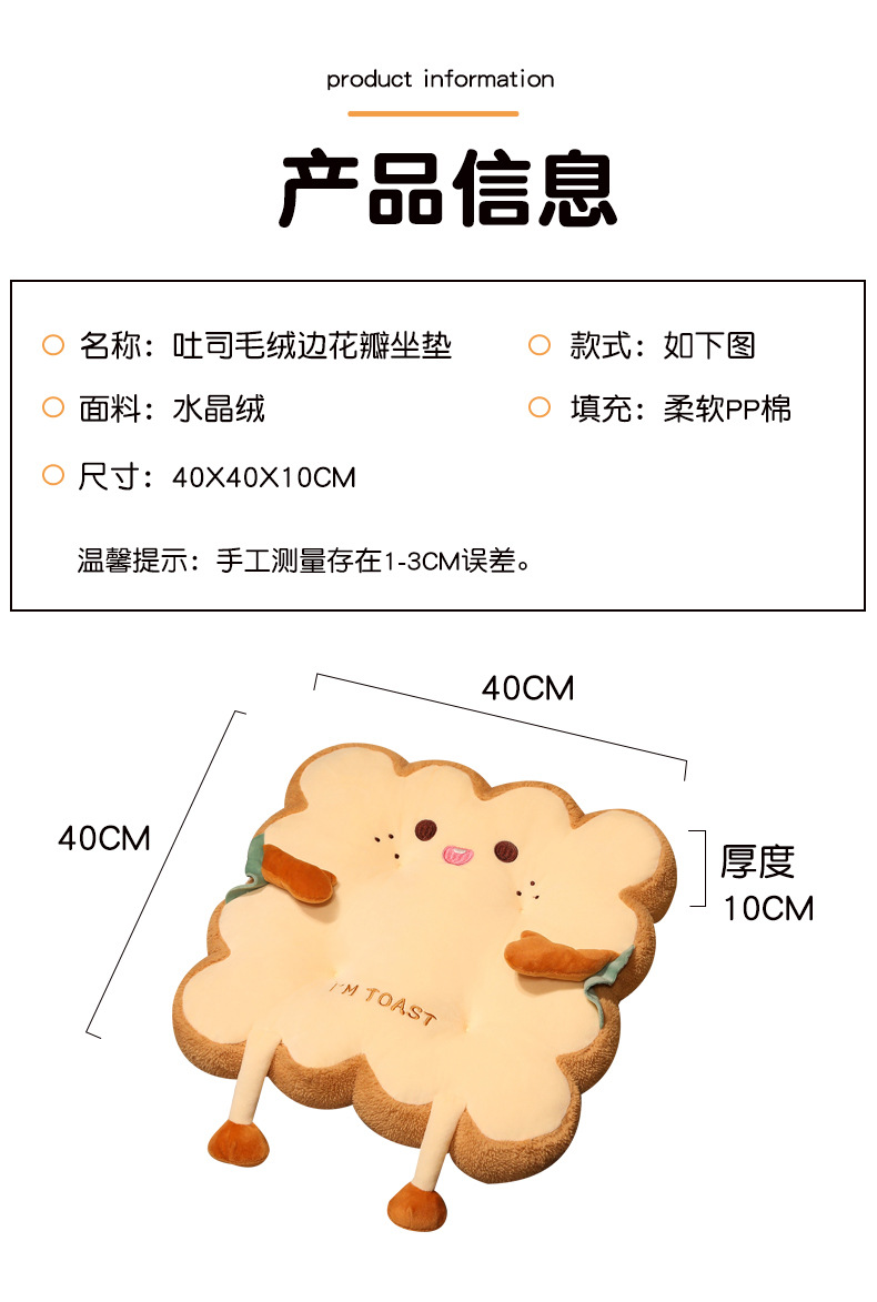 吐司坐垫可爱椅子屁股垫学生久坐加厚卡通办公室座椅冬季毛绒坐垫