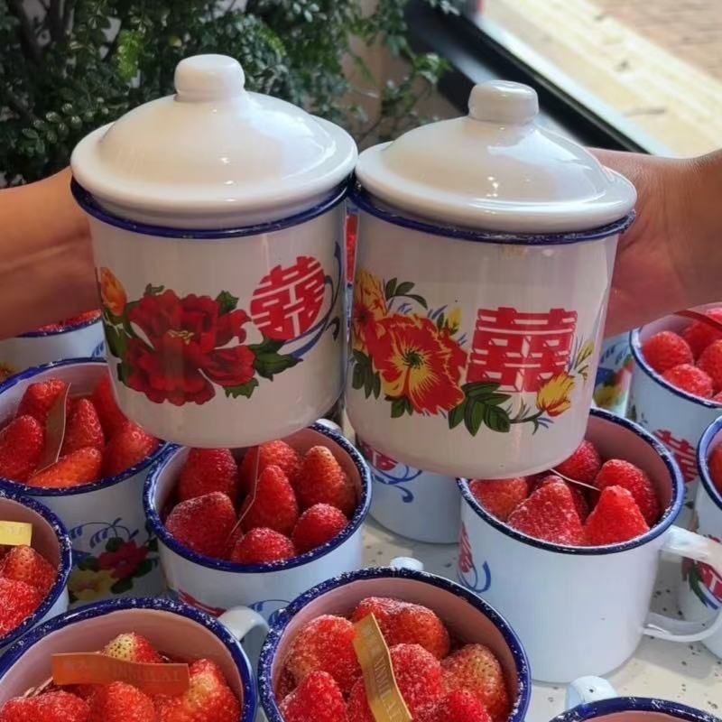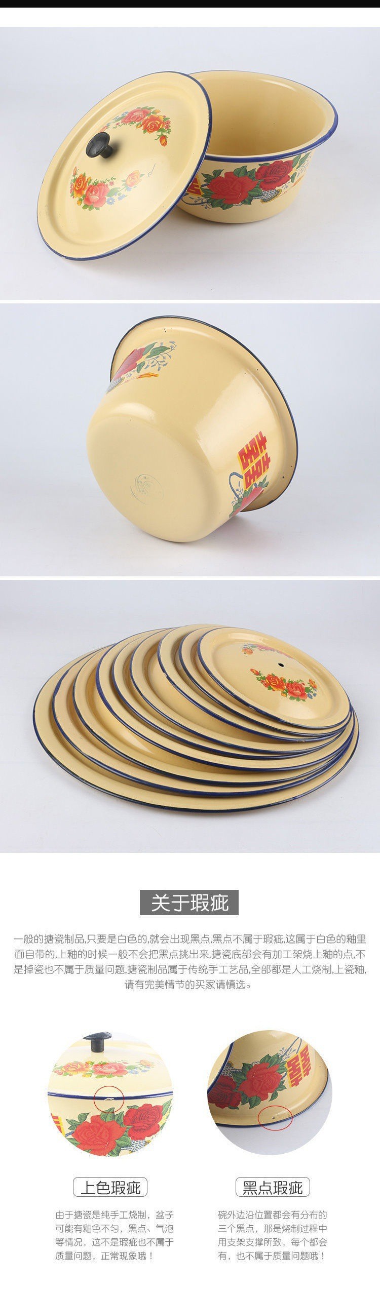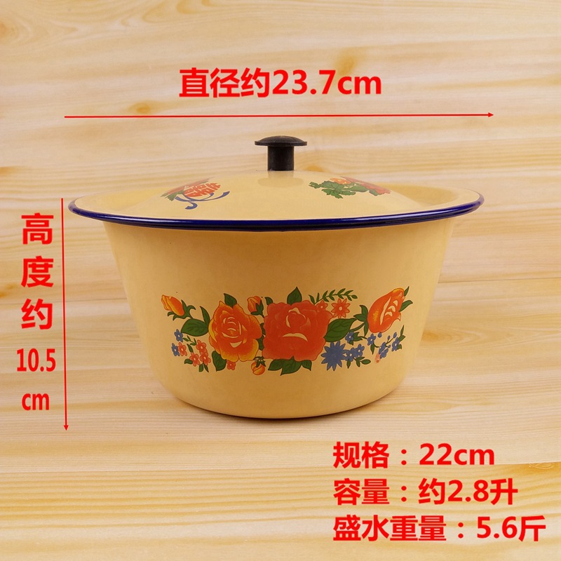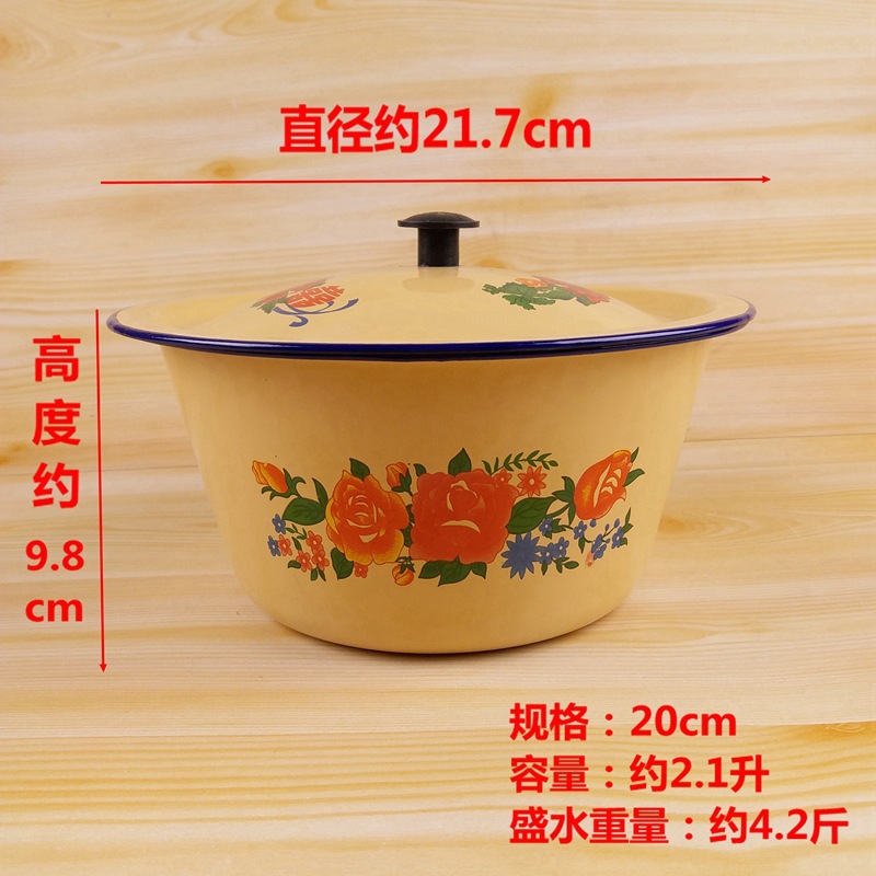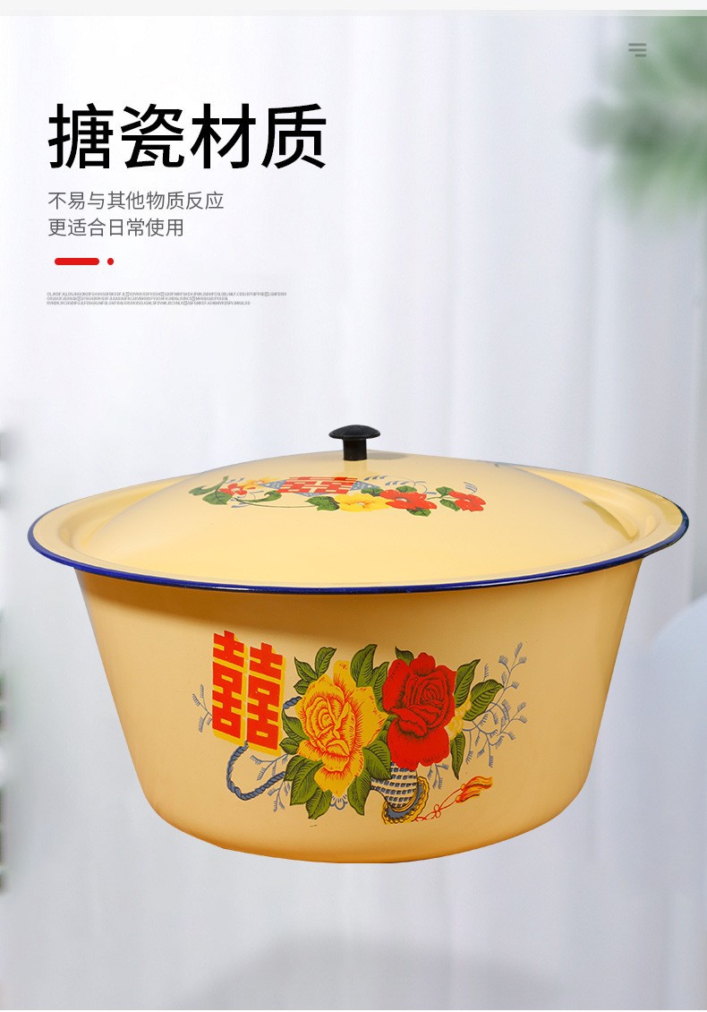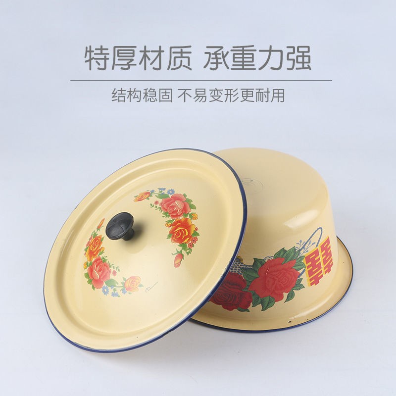 批发搪瓷碗老式家用猪油盆带盖黄色双喜搪瓷碗泡面麻辣烫火锅汤碗