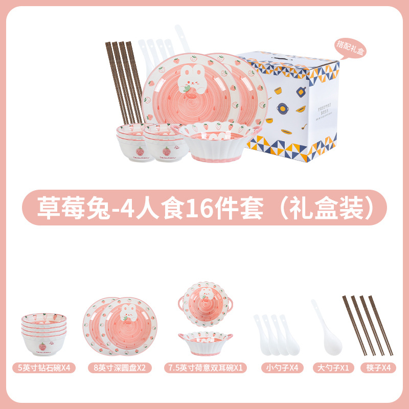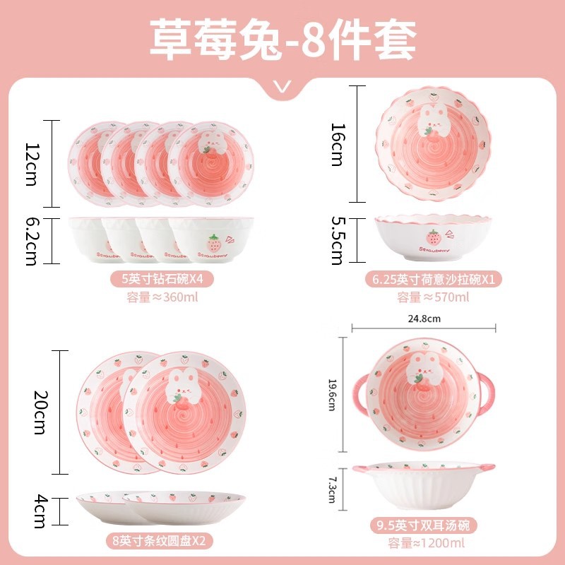 清新萌趣ins风釉下彩陶瓷餐具套装 盘子批发家用儿童碗沙拉碗鱼盘