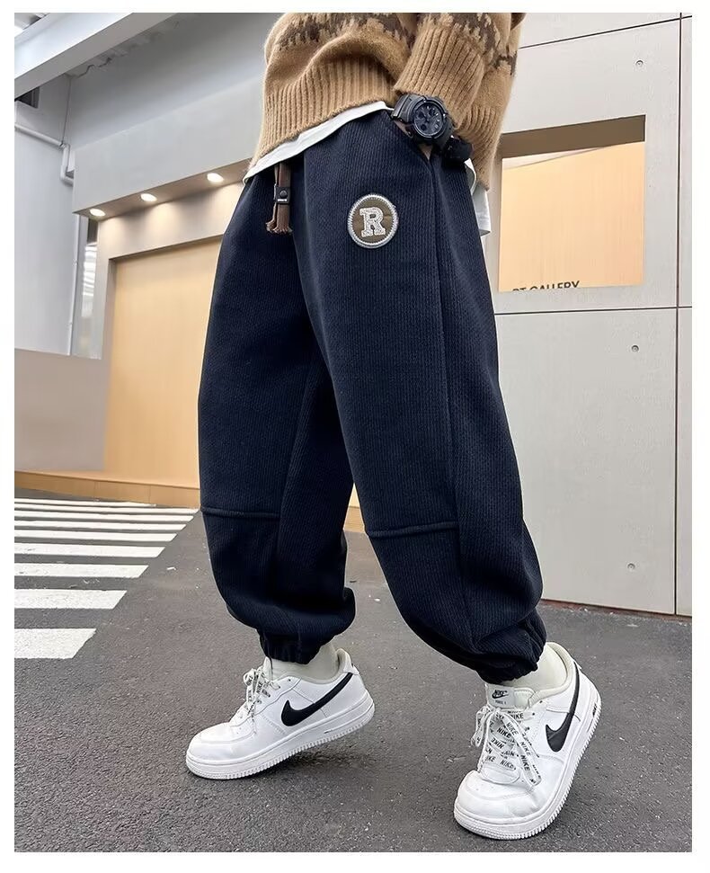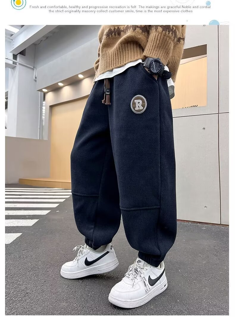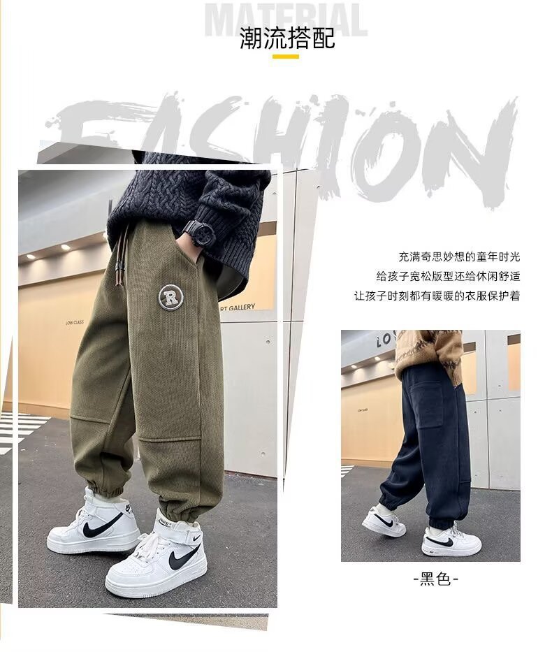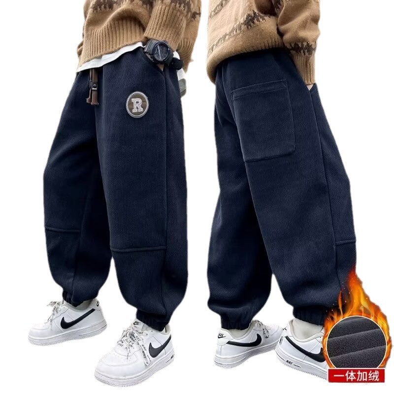 男童冬季加绒裤子秋冬款2024新款儿童棉运动裤一体绒中大童厚卫裤