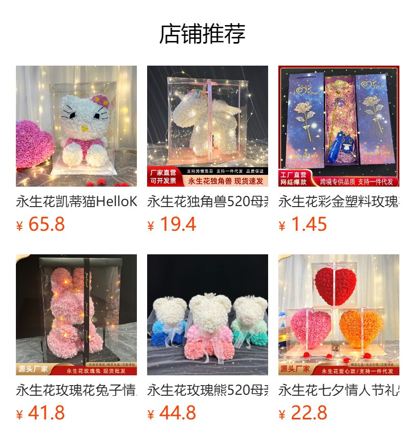 | 25CM玫瑰熊+INS风礼盒+串灯 | USD $4.05 | 18888 set available |