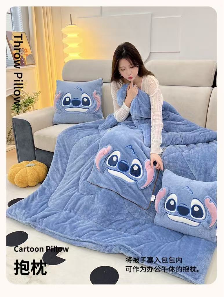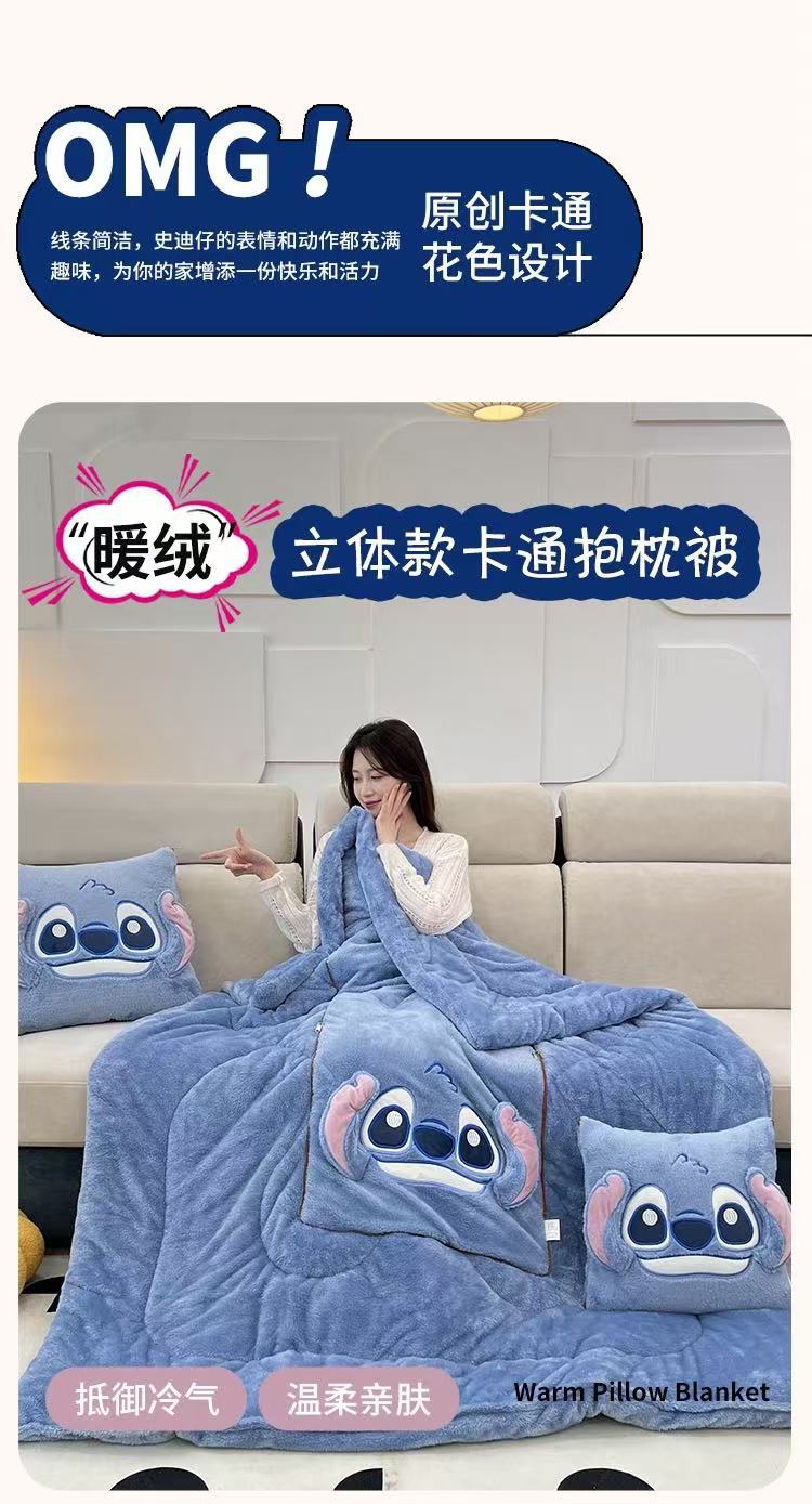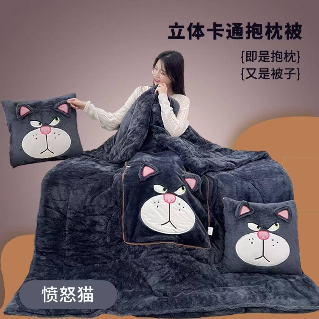 加厚北极绒抱枕被子午睡二合一保暖卡通车载两用办公室靠垫被