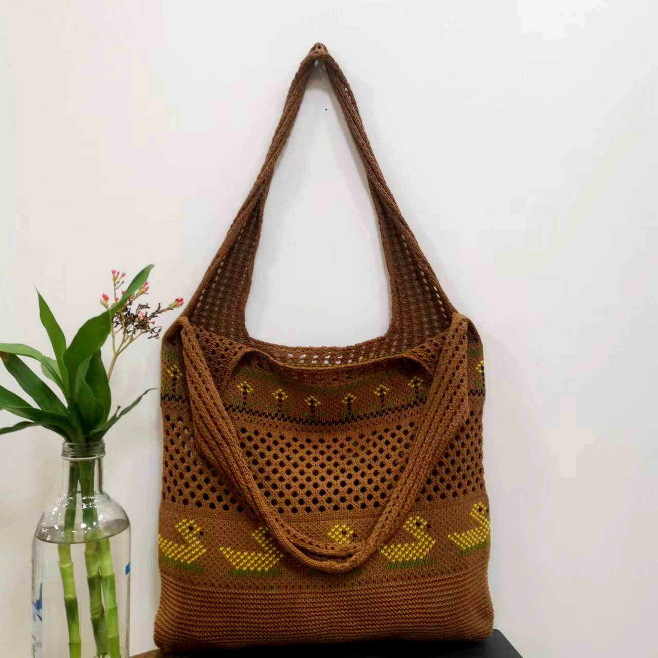 新款跨境日韩针织包腋下编织包 简约购物袋 大容量网眼女士单肩包