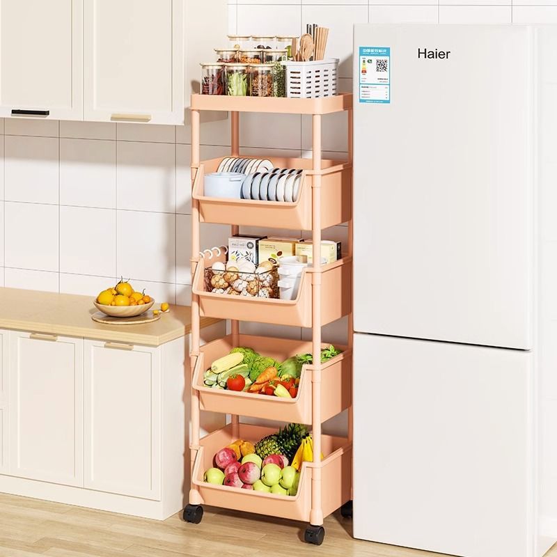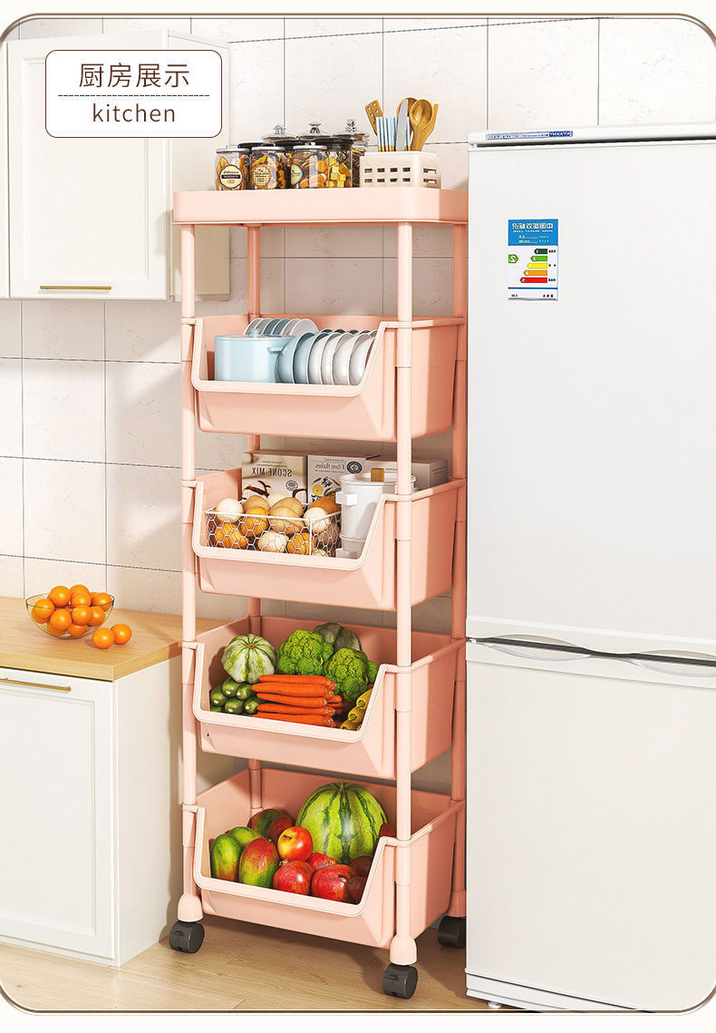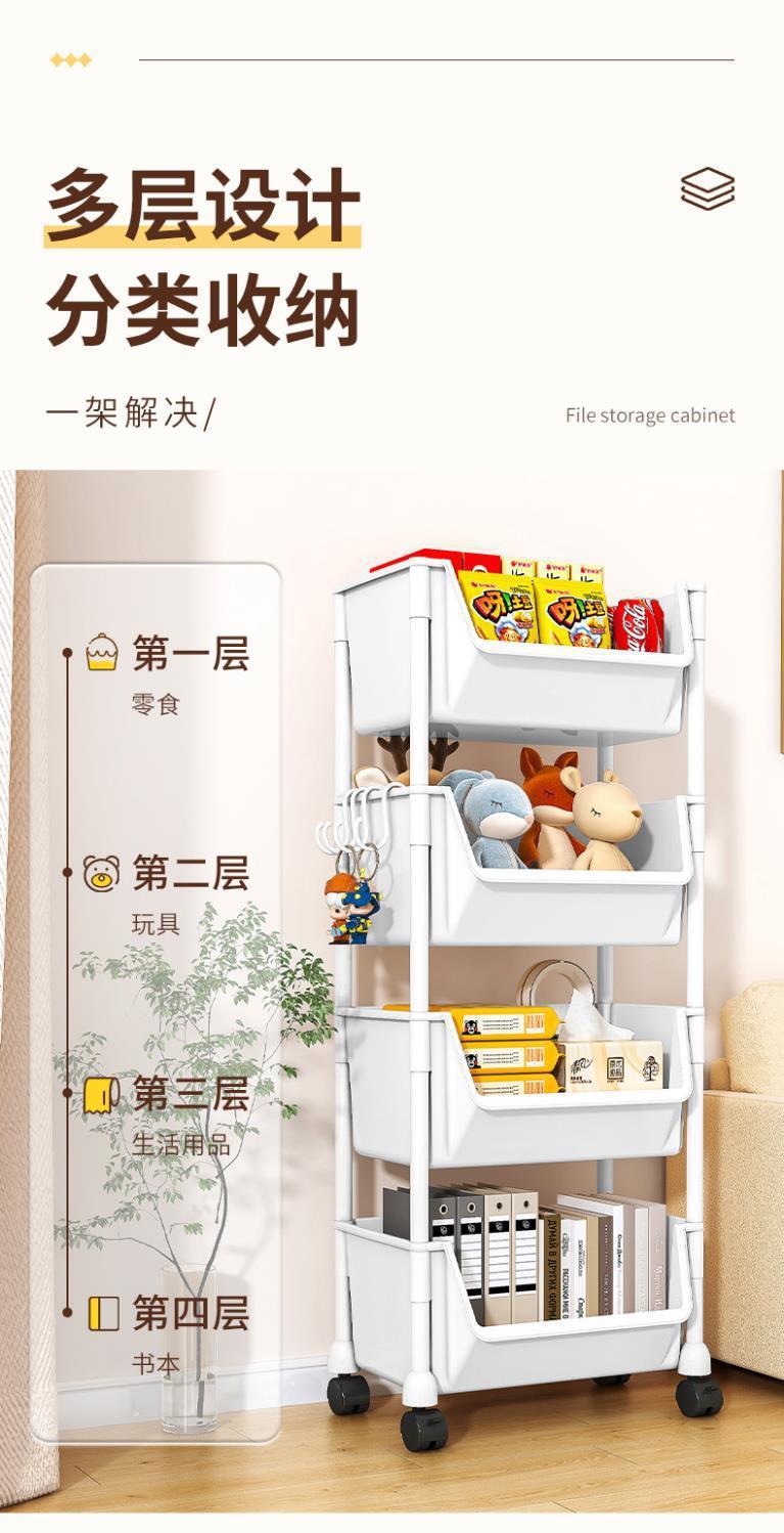 小推车置物架家用零食落地多层客厅收纳书架移动厨房果蔬菜篮架子
