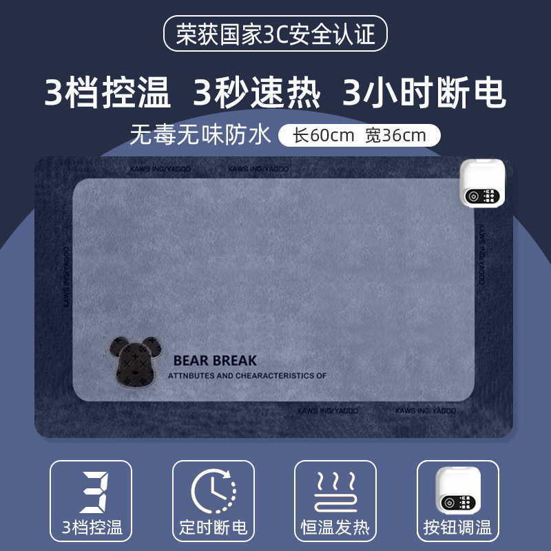 加热鼠标垫厚款办公室超大电脑桌面防水桌垫宿舍写作业暖桌垫