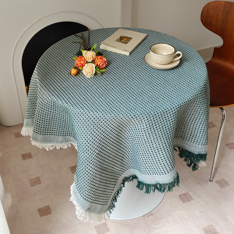 法式ins风棉麻日式田园白色桌布茶几布床头柜复古流苏圆桌餐桌布