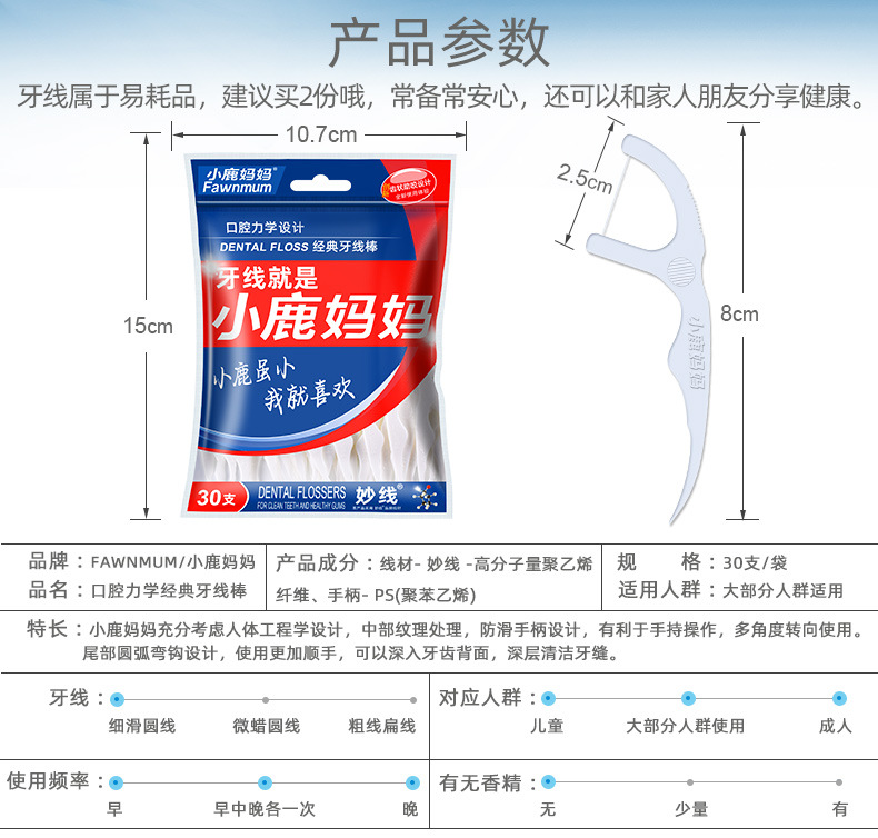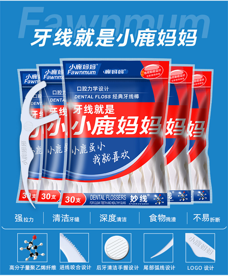 小鹿妈妈 牙线 袋装 一次性牙线定制工厂口腔餐饮批发 随身牙线棒