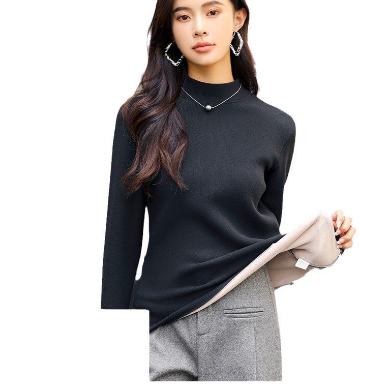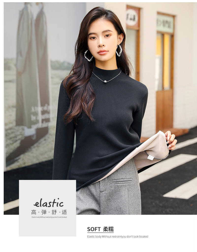 卡诗乐冬季半高领修身保暖衣女内搭可外穿加绒加厚打底衫上衣女