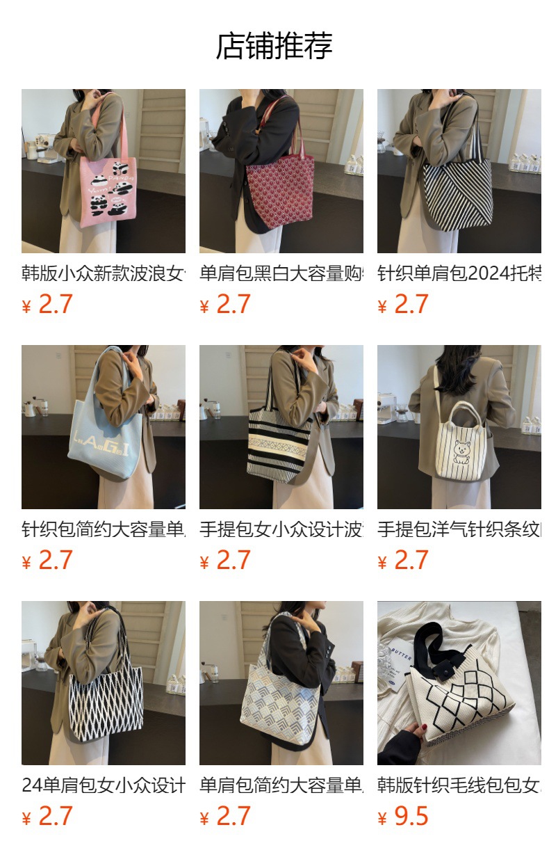 网红款花朵卡通针织包日韩系编织单肩包腋下包新款女士包包托特包