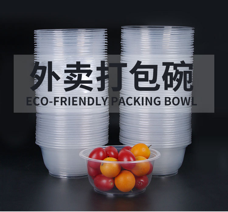 一次性塑料碗外卖打包盒快餐盒透明圆形带盖冰粉汤碗粥碗整箱饭盒