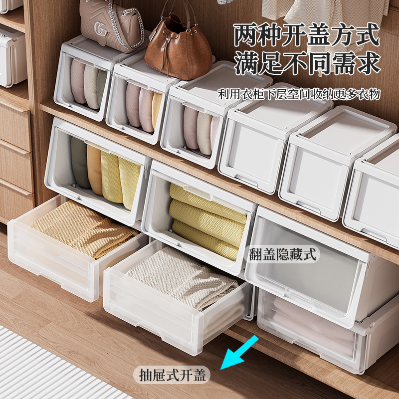 河马口收纳箱家用翻盖式衣服玩具整理箱抽屉式收纳盒塑料储物柜
