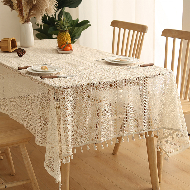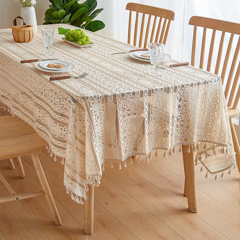 蕾丝桌布棉麻文艺防尘田园风餐桌布镂空家用防滑桌垫高级感耐高温