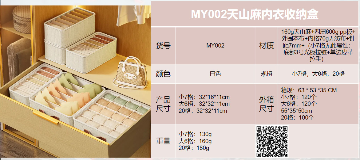 天山麻内衣收纳盒卧室内裤收纳抽屉分格多功能宿舍家用衣柜内衣盒