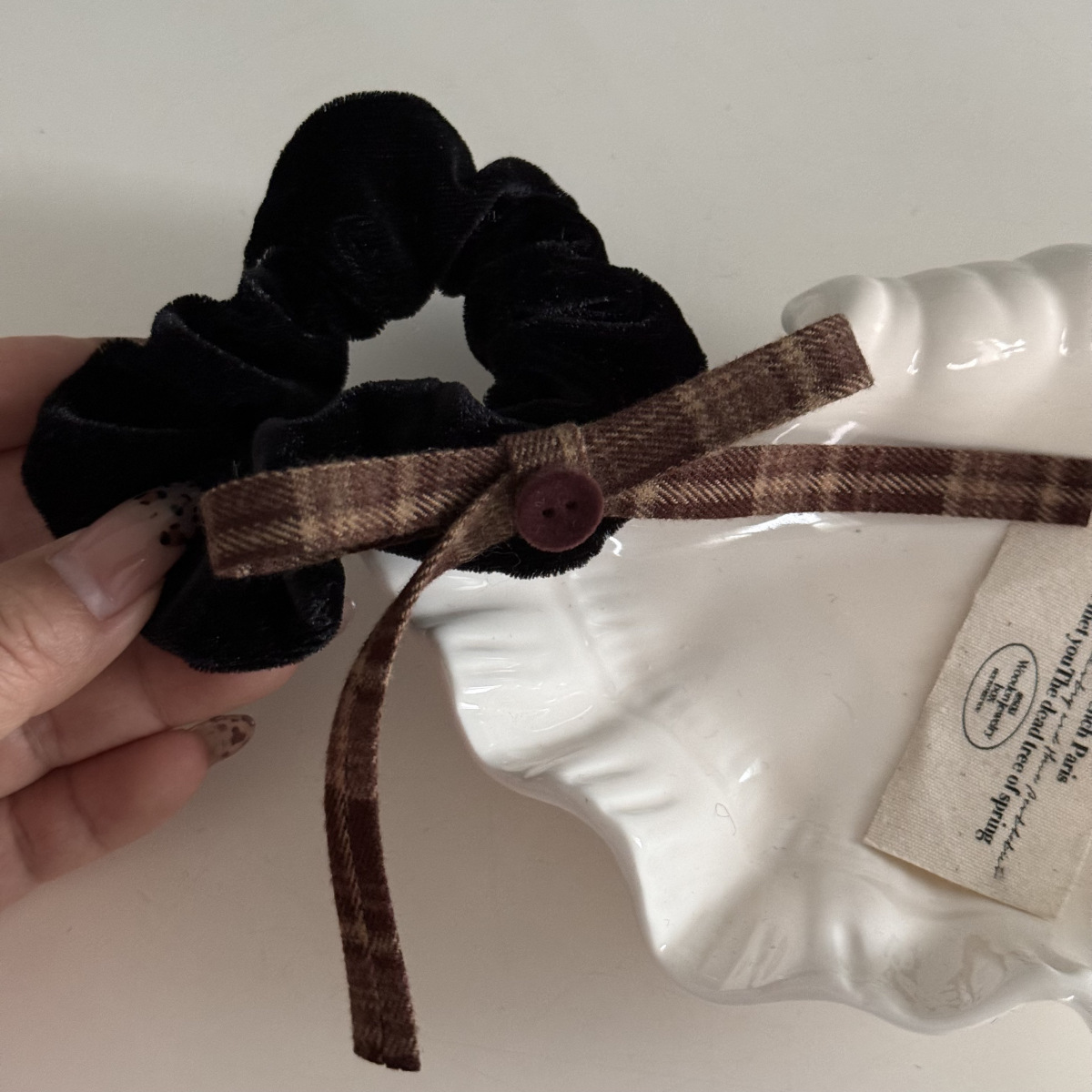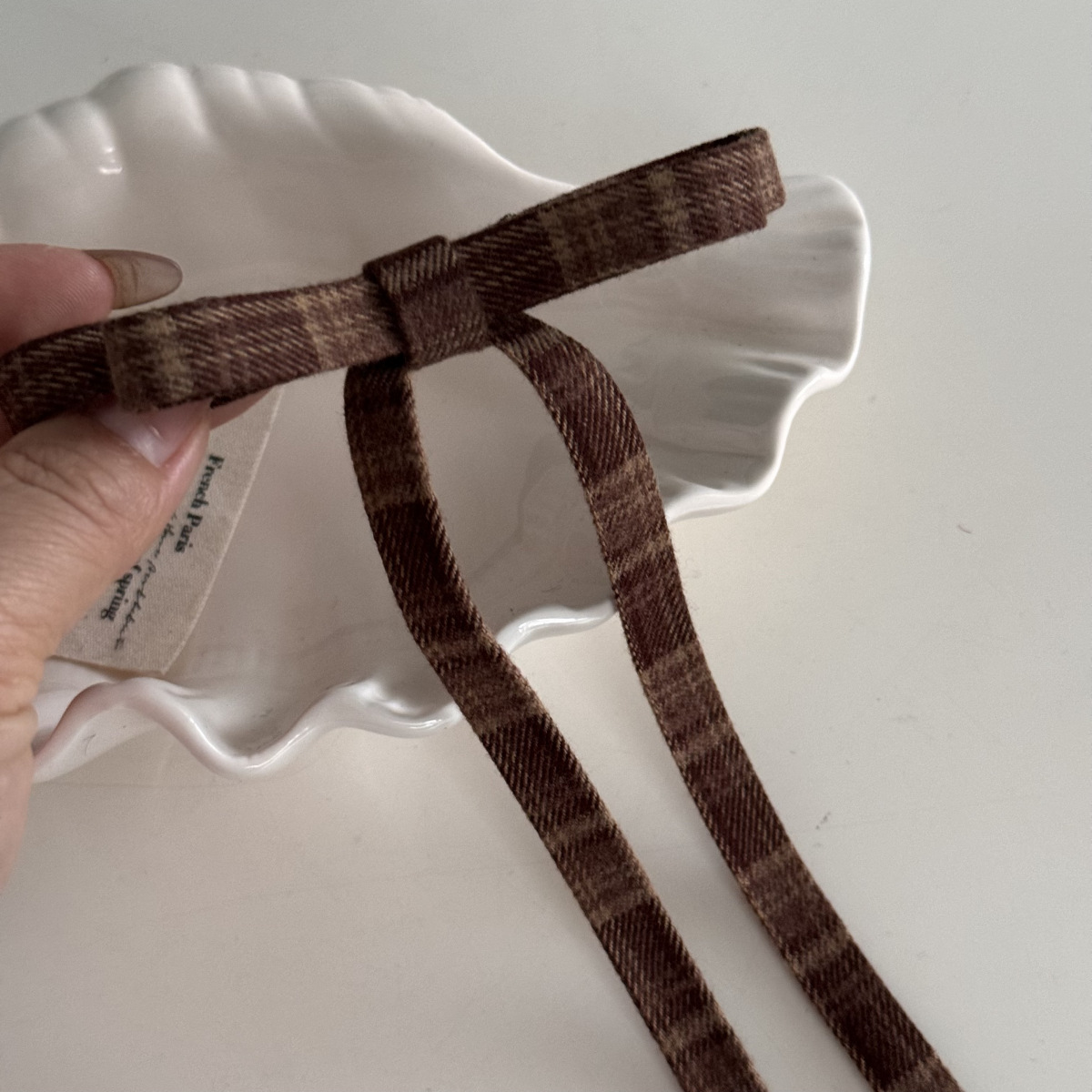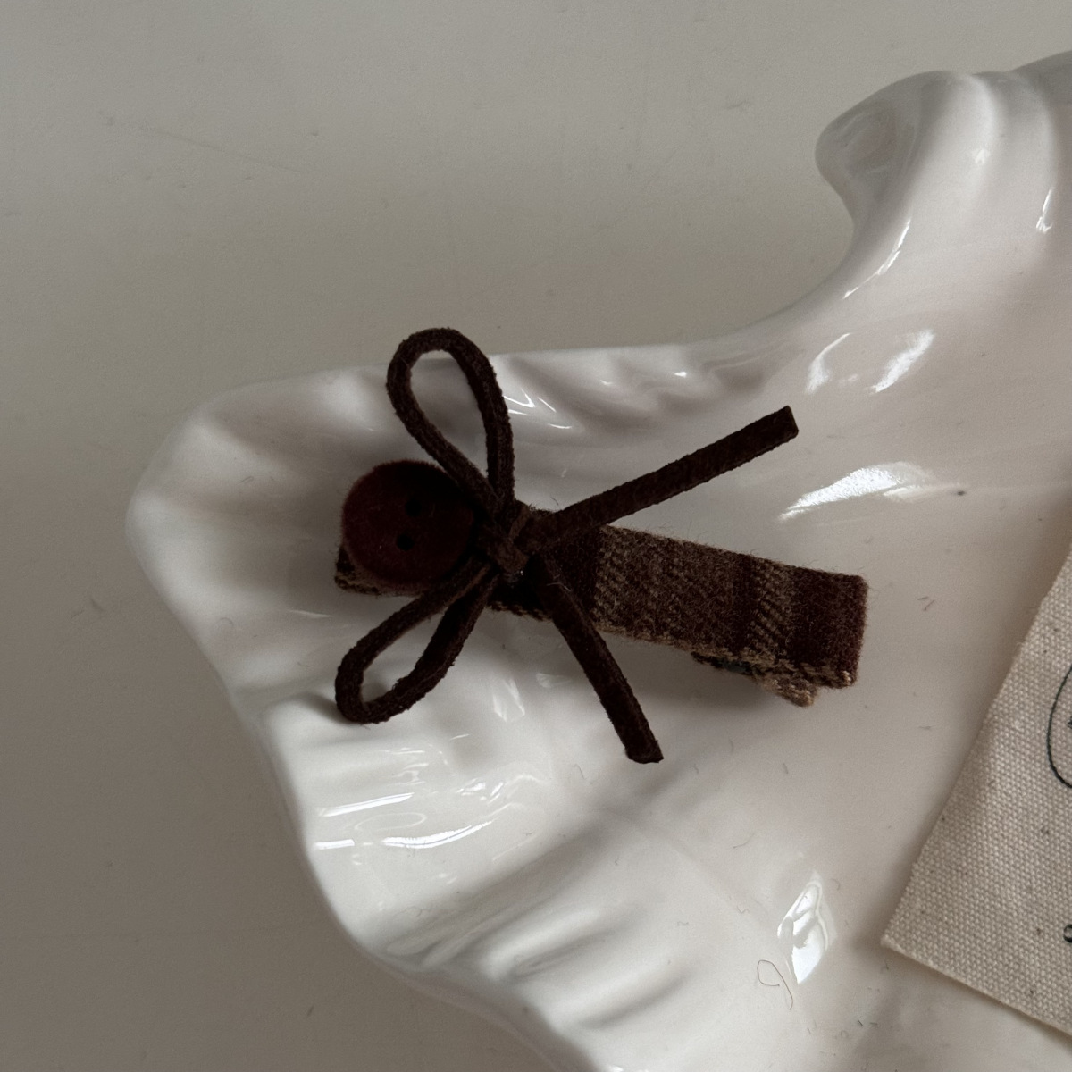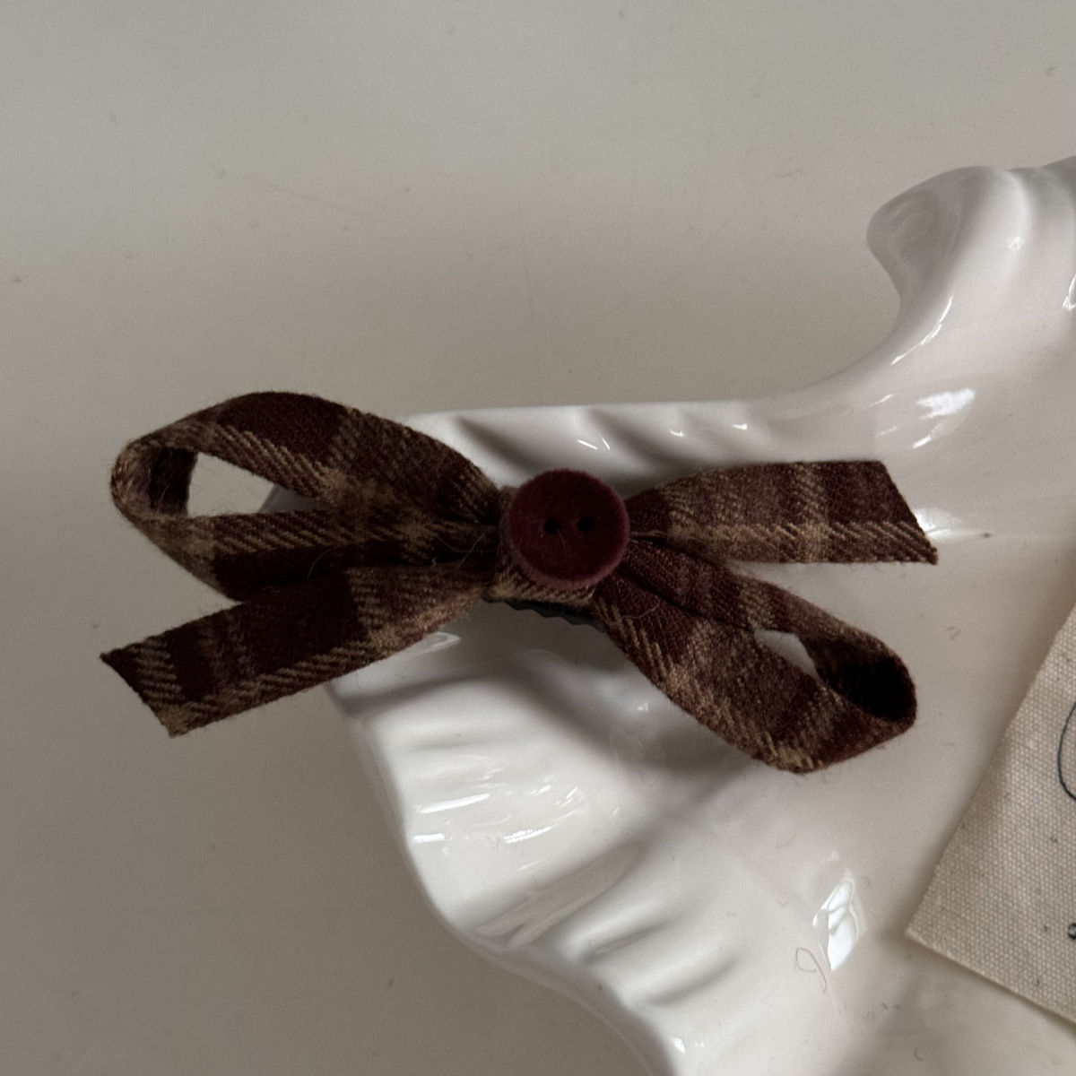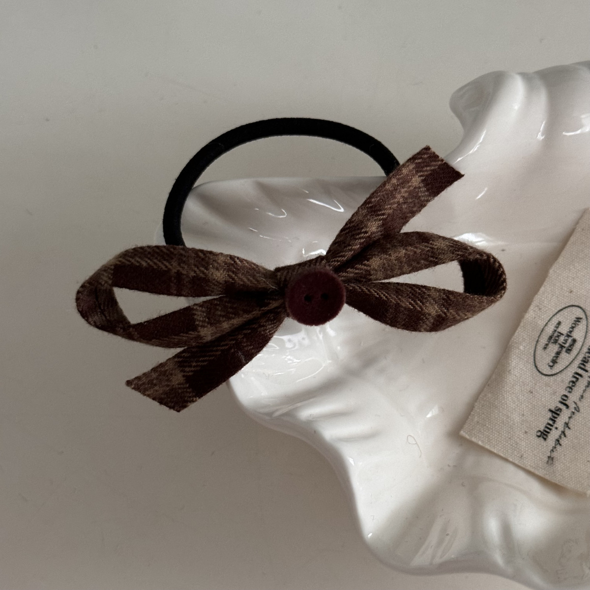 咖色格纹蝴蝶结纽扣发夹长飘带复古美拉德发饰新款刘海夹抓夹发饰