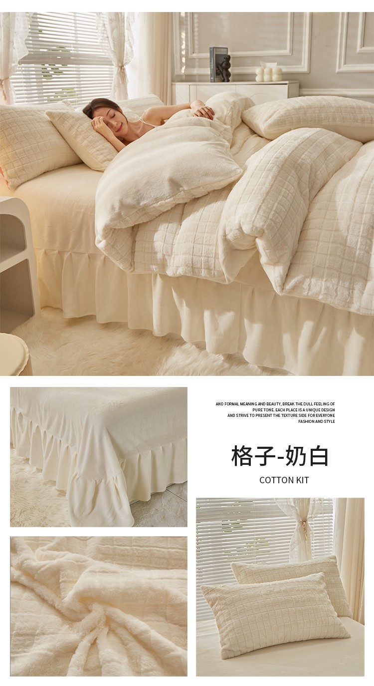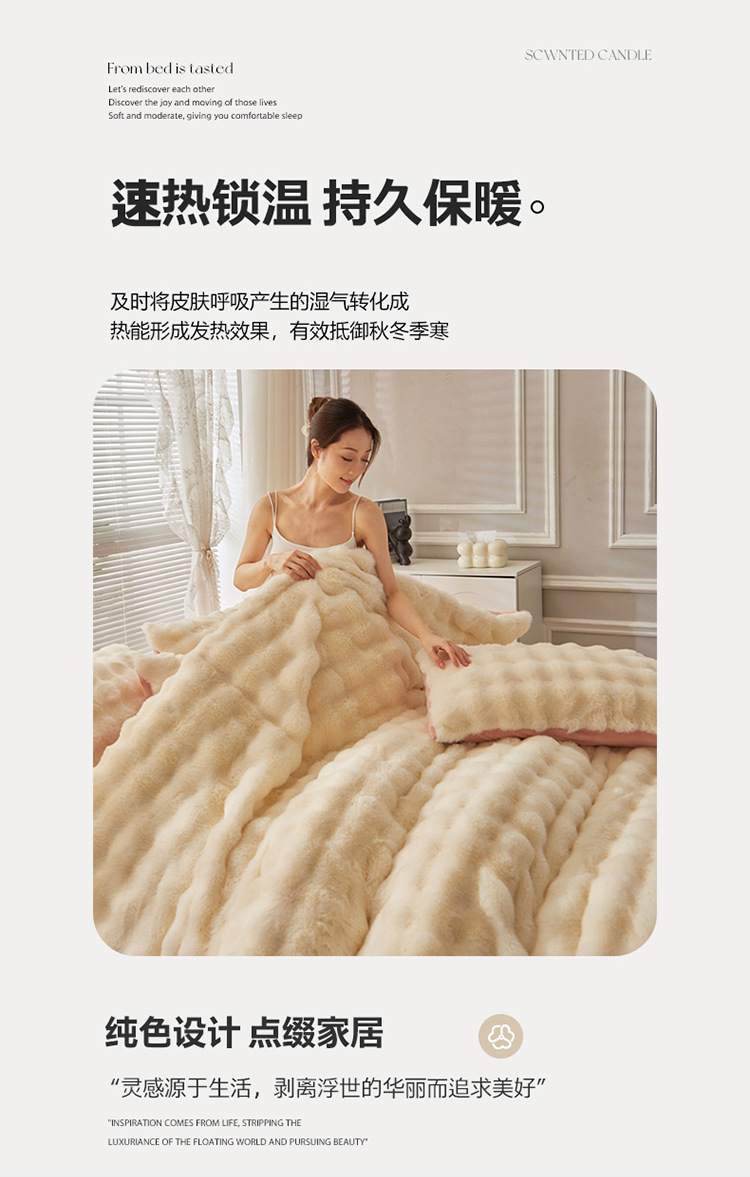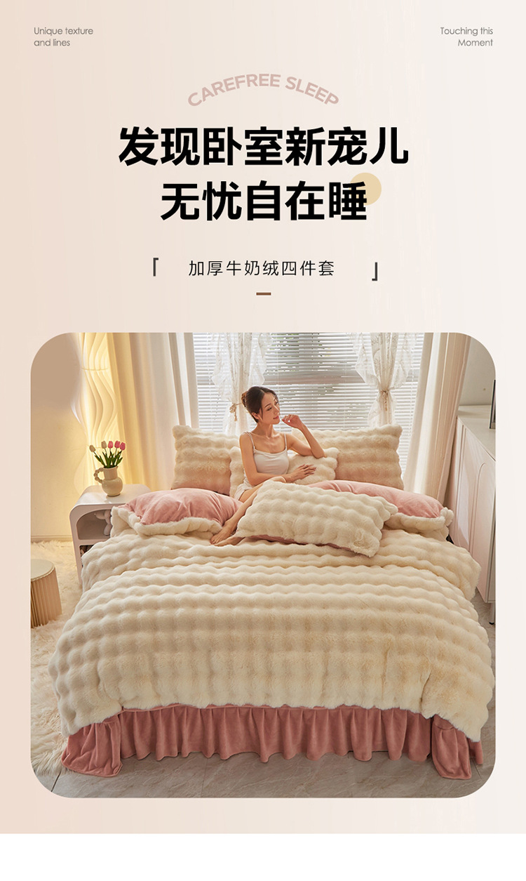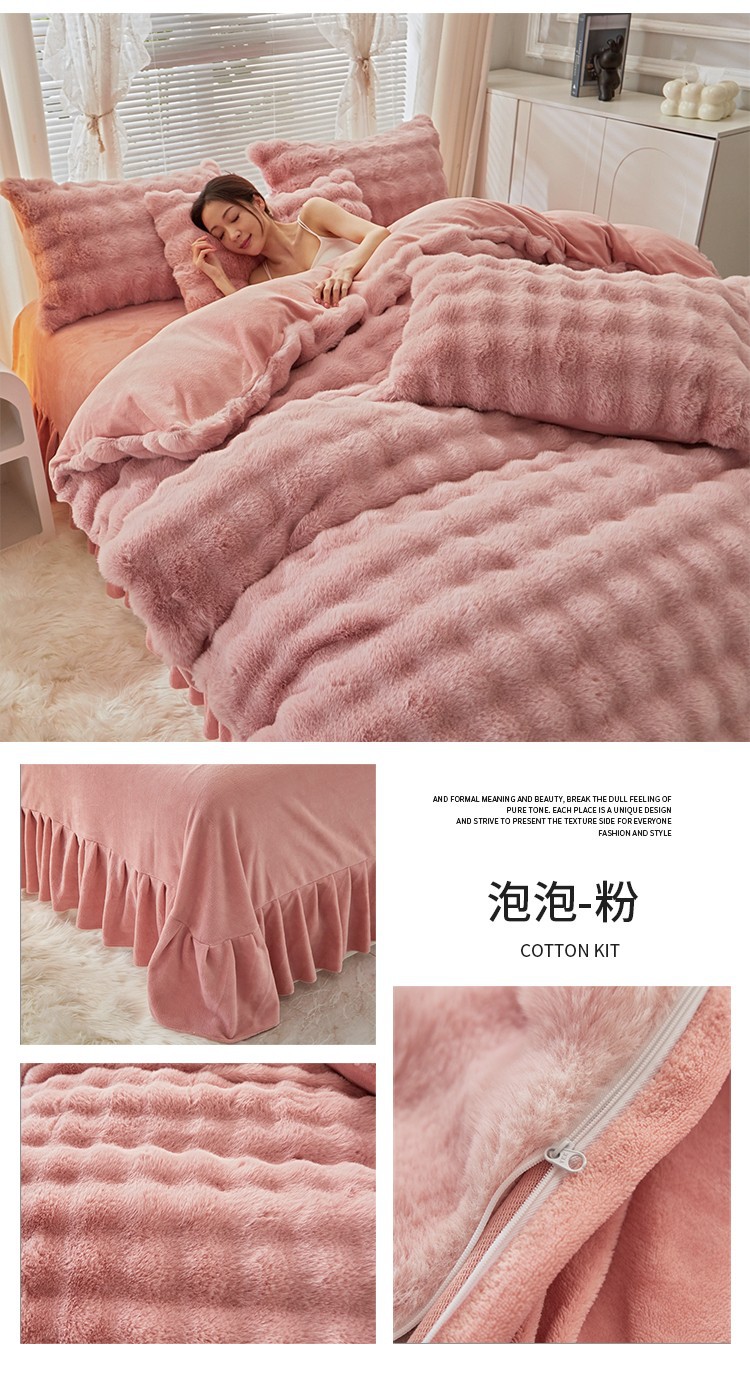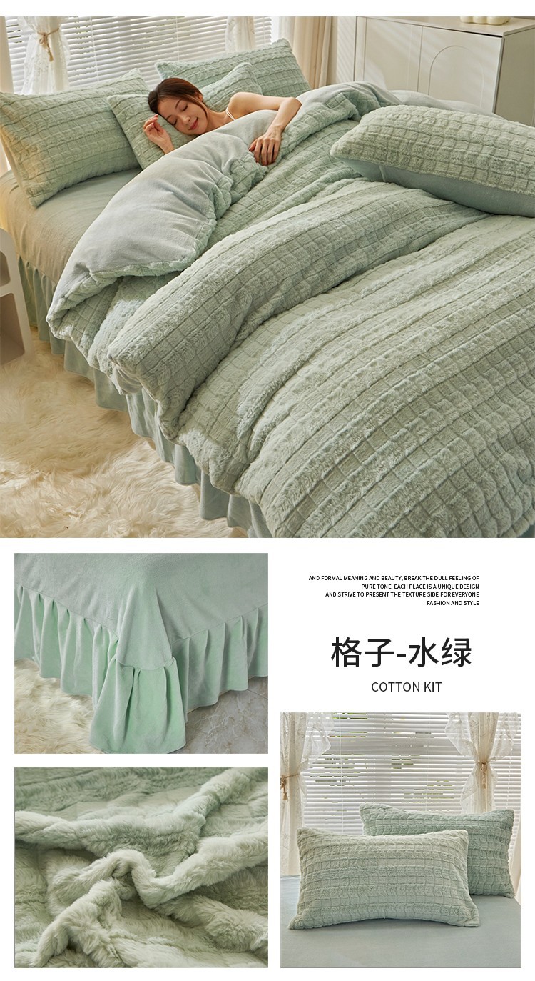 冬季加厚兔绒牛奶绒四件套纯色双面加绒珊瑚牛奶绒被套法兰绒床裙