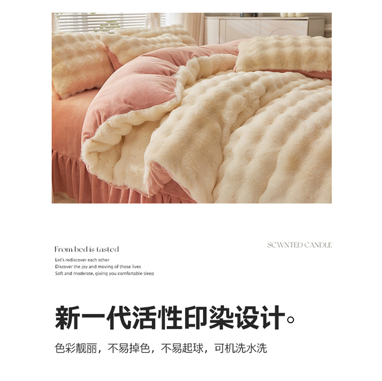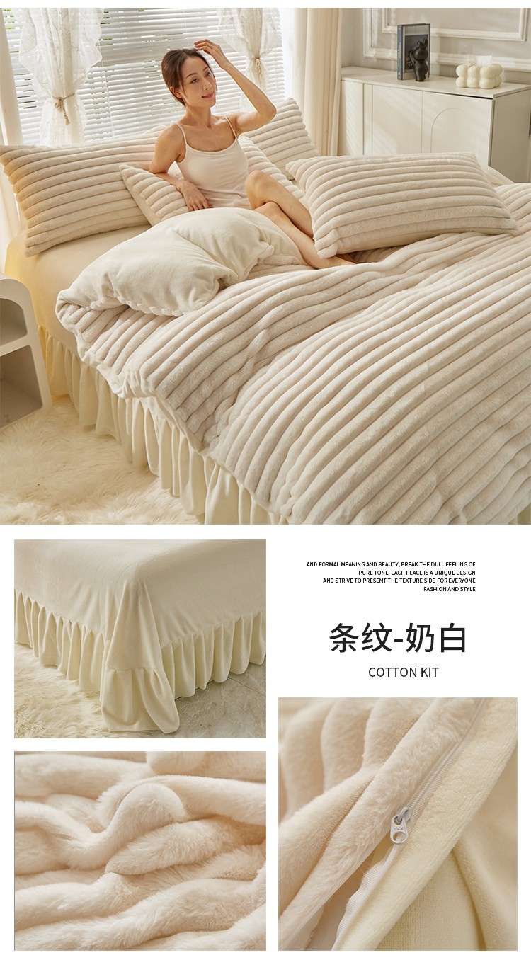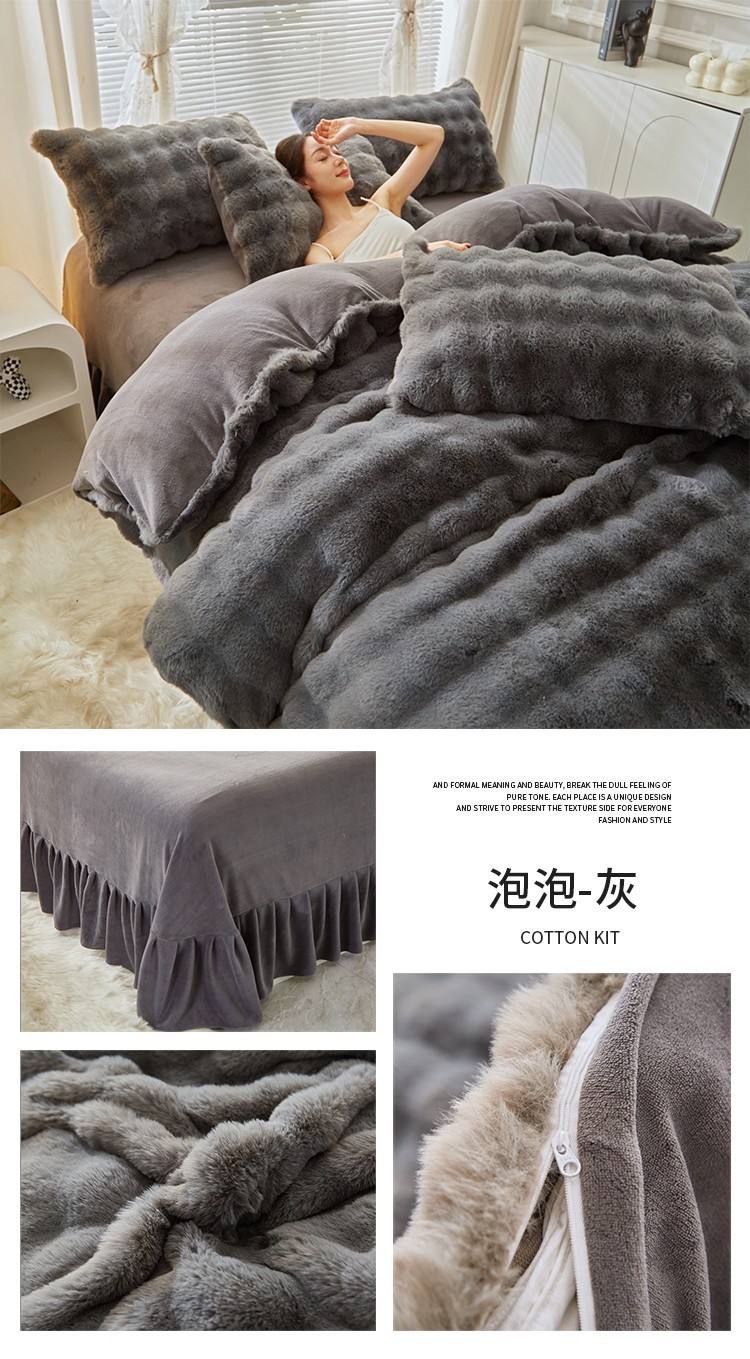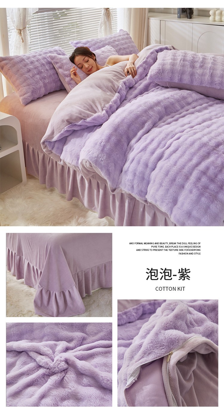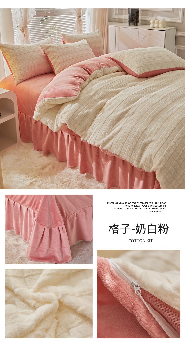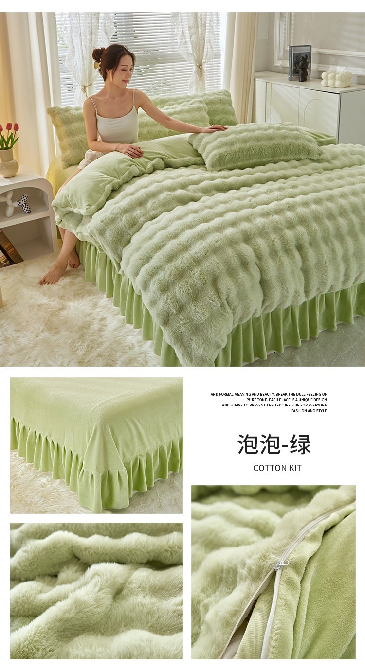 冬季加厚兔绒牛奶绒四件套纯色双面加绒珊瑚牛奶绒被套法兰绒床裙