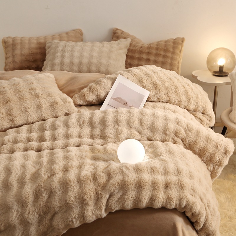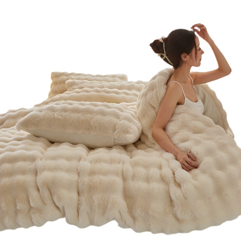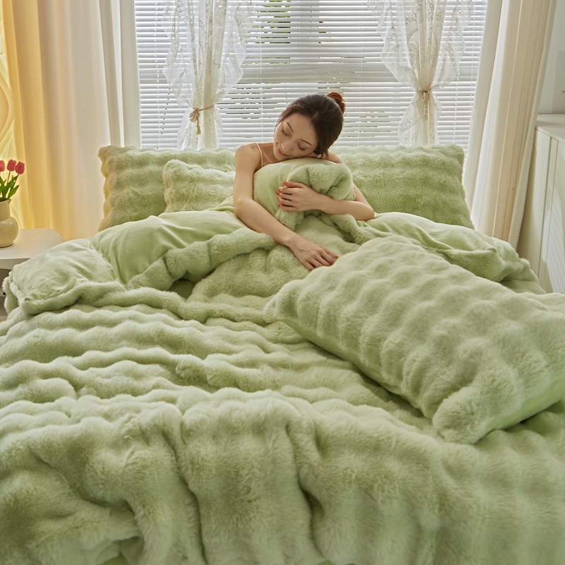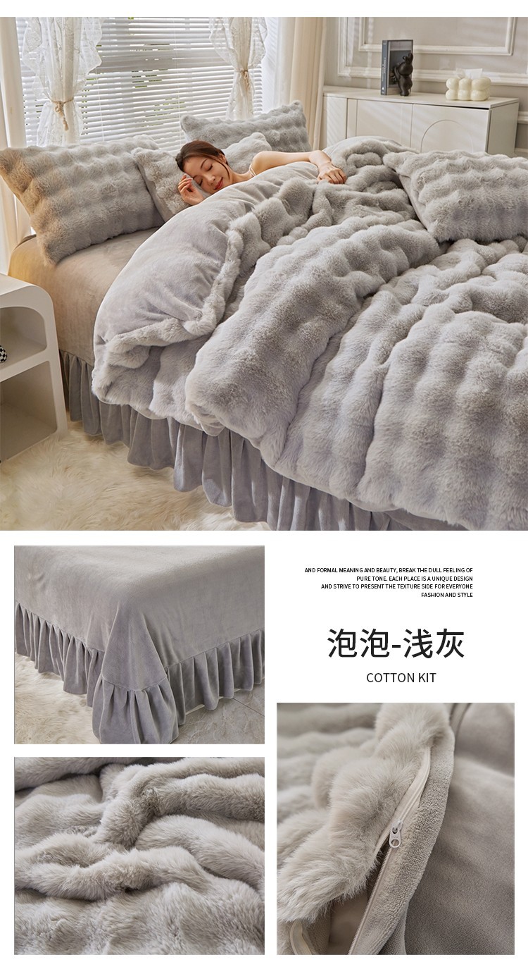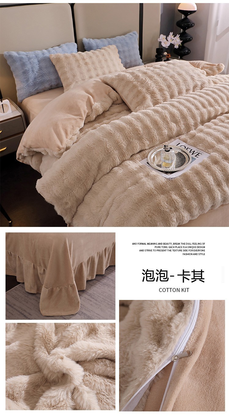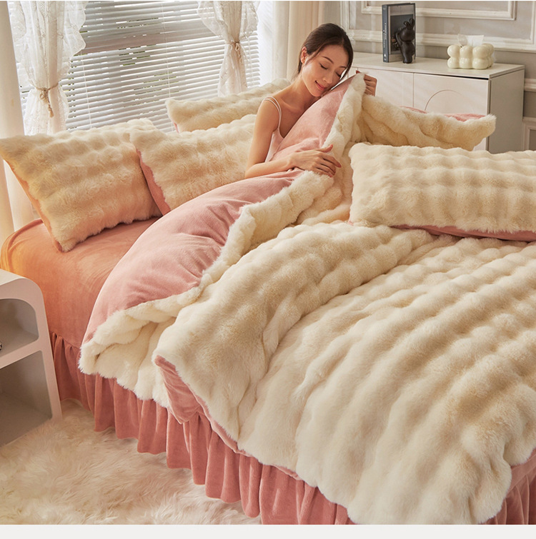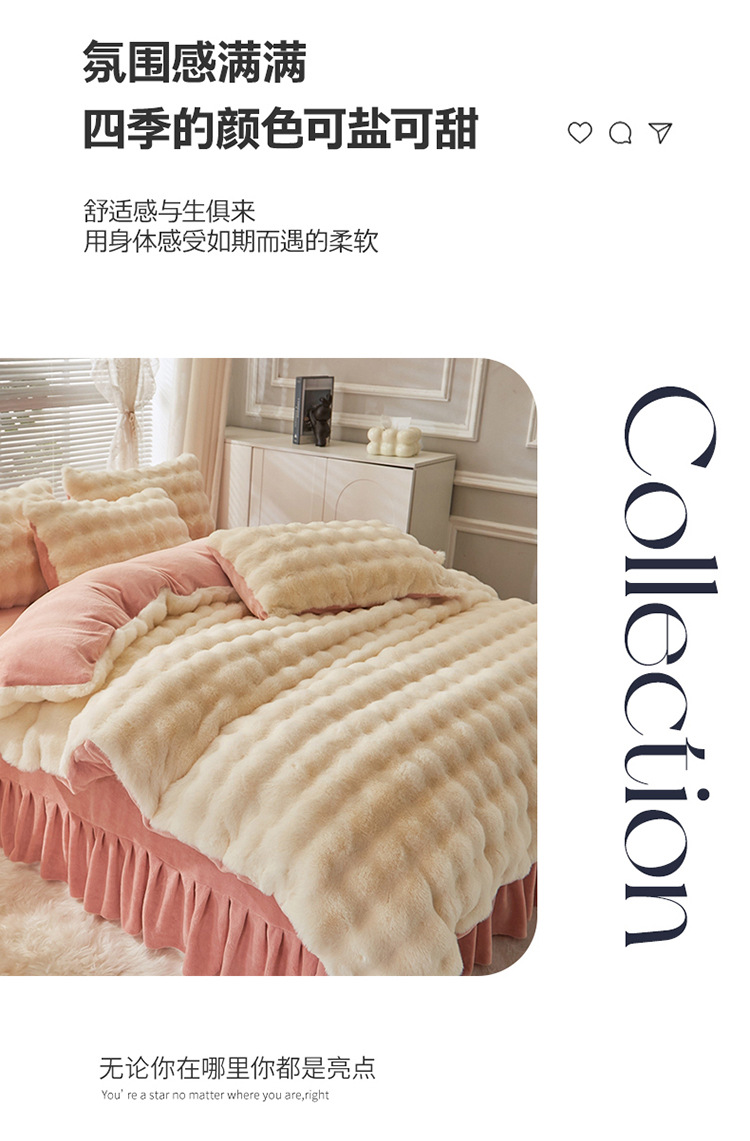 冬季加厚兔绒牛奶绒四件套纯色双面加绒珊瑚牛奶绒被套法兰绒床裙