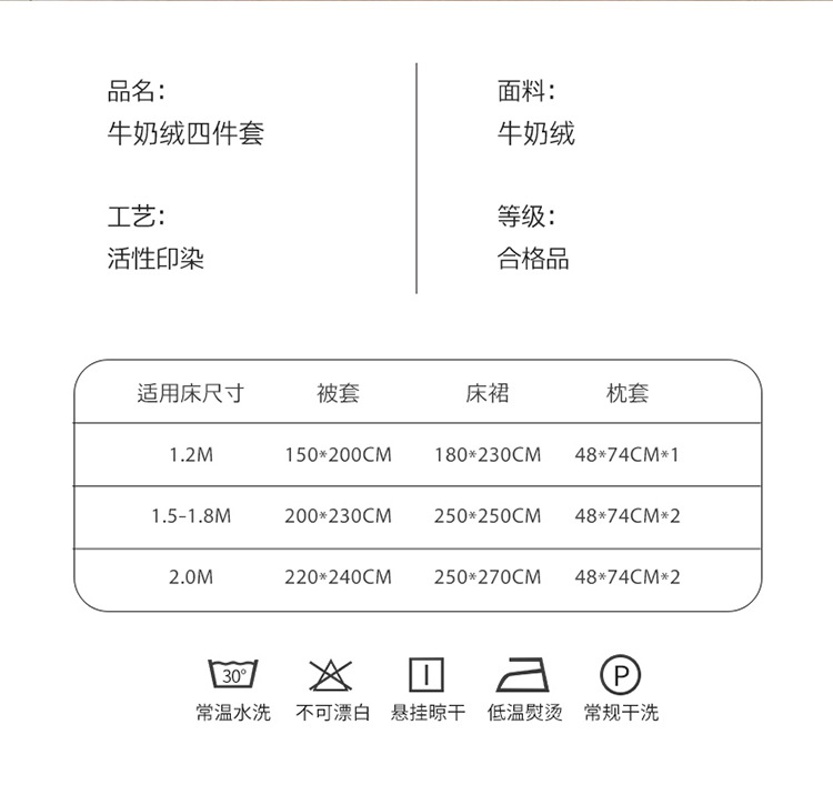 | 2.0m四件套(被套220*240cm) | USD $24.69 | 4945 set available |