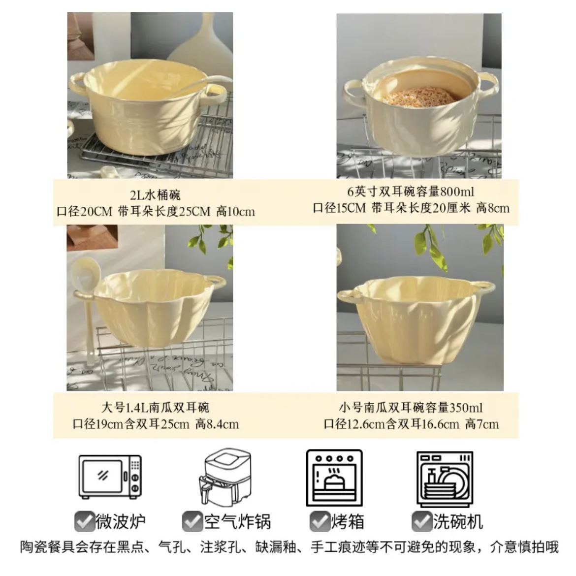 奶fufu双耳大汤碗陶瓷面碗家用大容量泡面碗ins汤盆大碗螺蛳粉碗