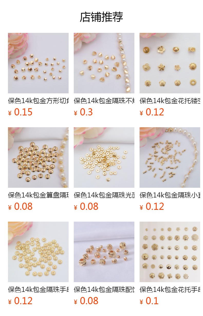 保色14k包金隔珠光面实心铜珠子手串配饰diy手项链串珠材料小金珠