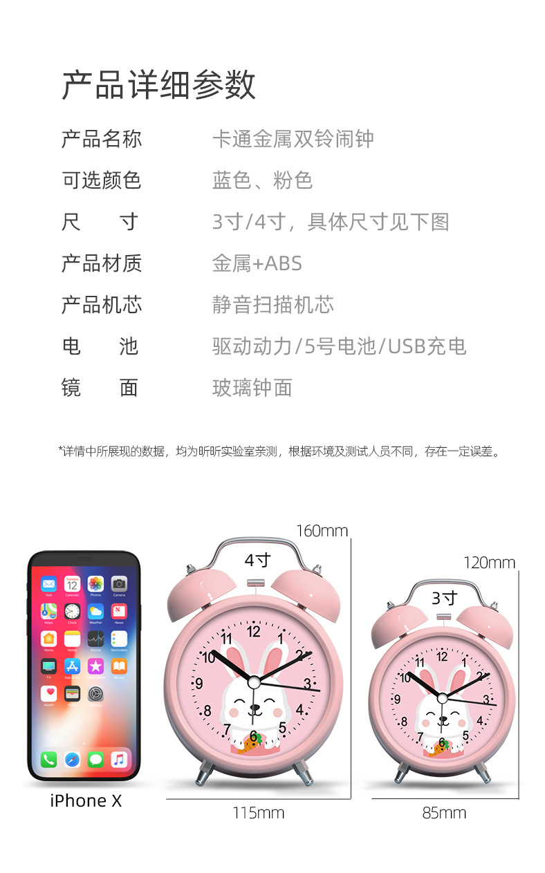 闹钟学生儿童专用起床神器床头男女孩强力叫醒金属打铃智能小闹钟