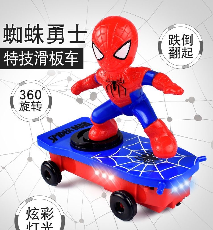 抖音蜘蛛侠玩具特技滑板车360翻滚摔不到的儿童益智玩具一件代发