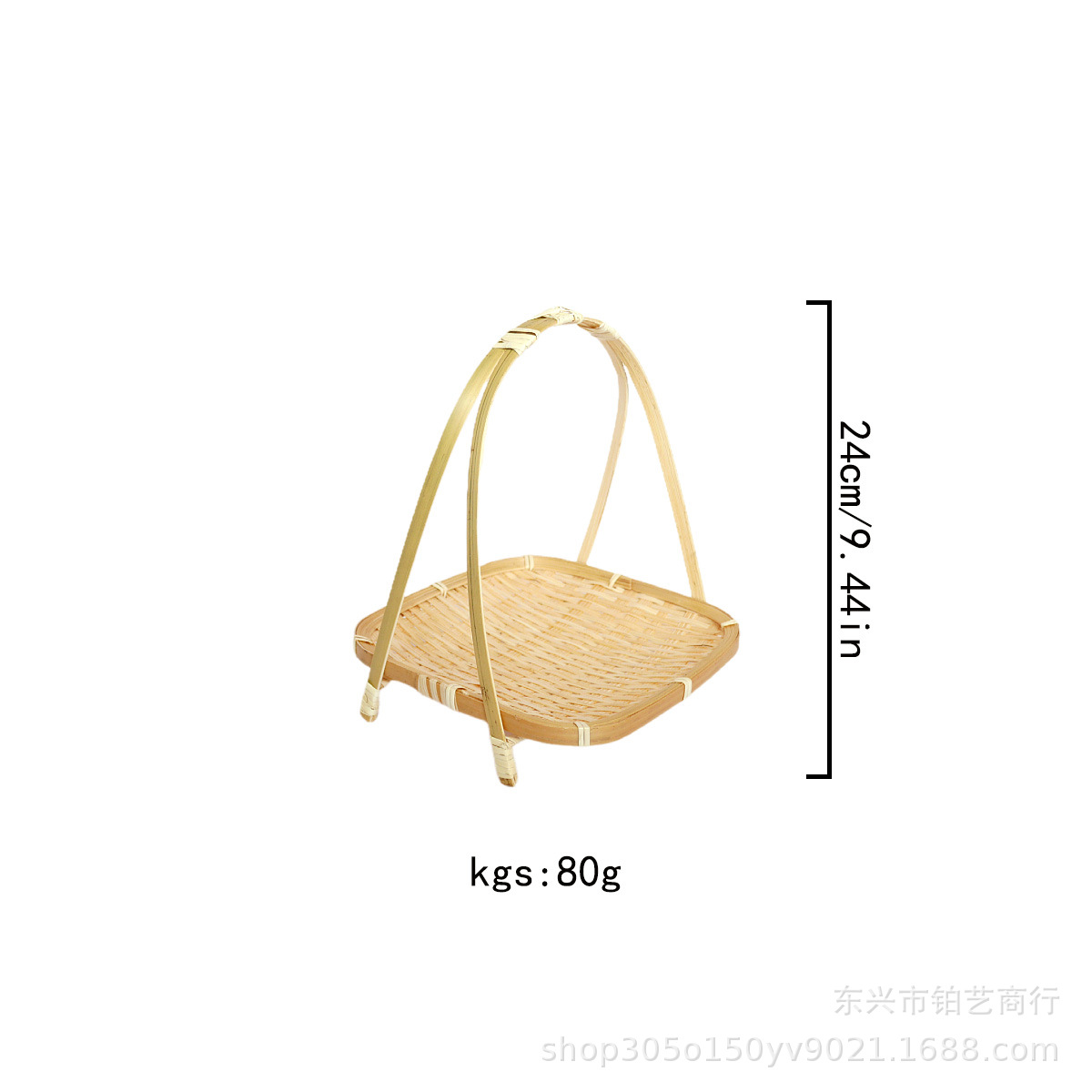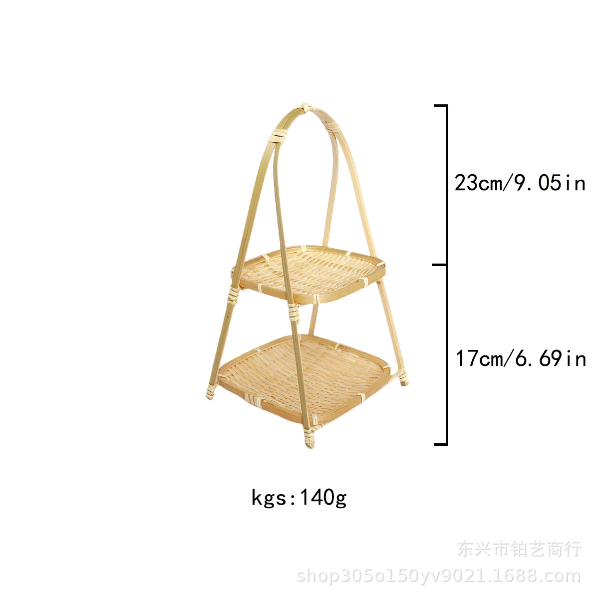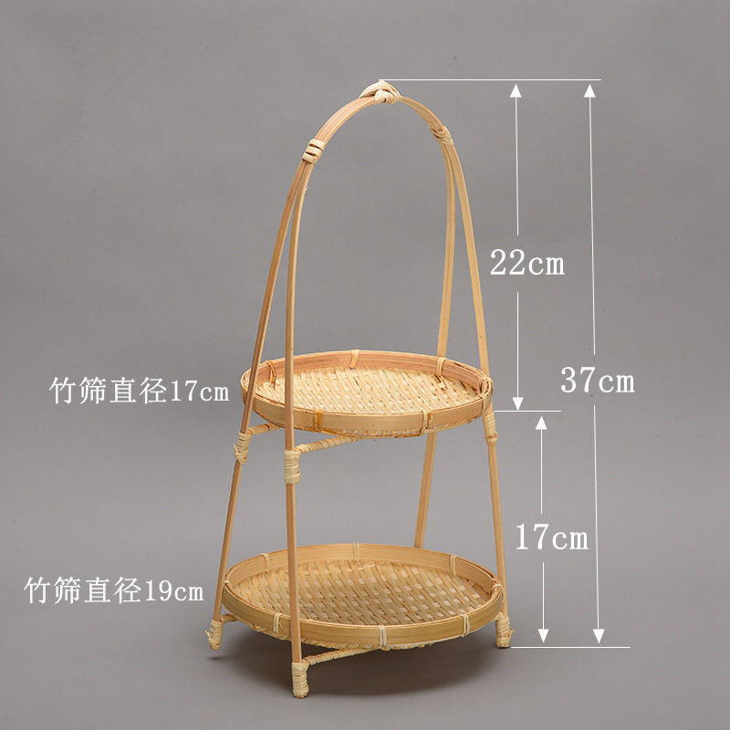 竹编小提篮圆形提手茶点水果篮子 糕点托盘创意小竹篮 多层竹编篮