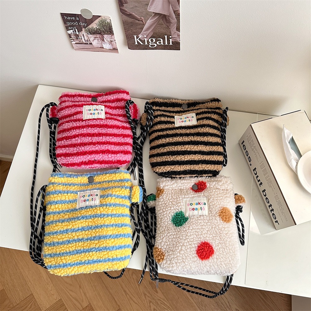网红同款新款毛绒彩虹波点可爱小包粉色单肩斜挎包逛街随身收纳袋