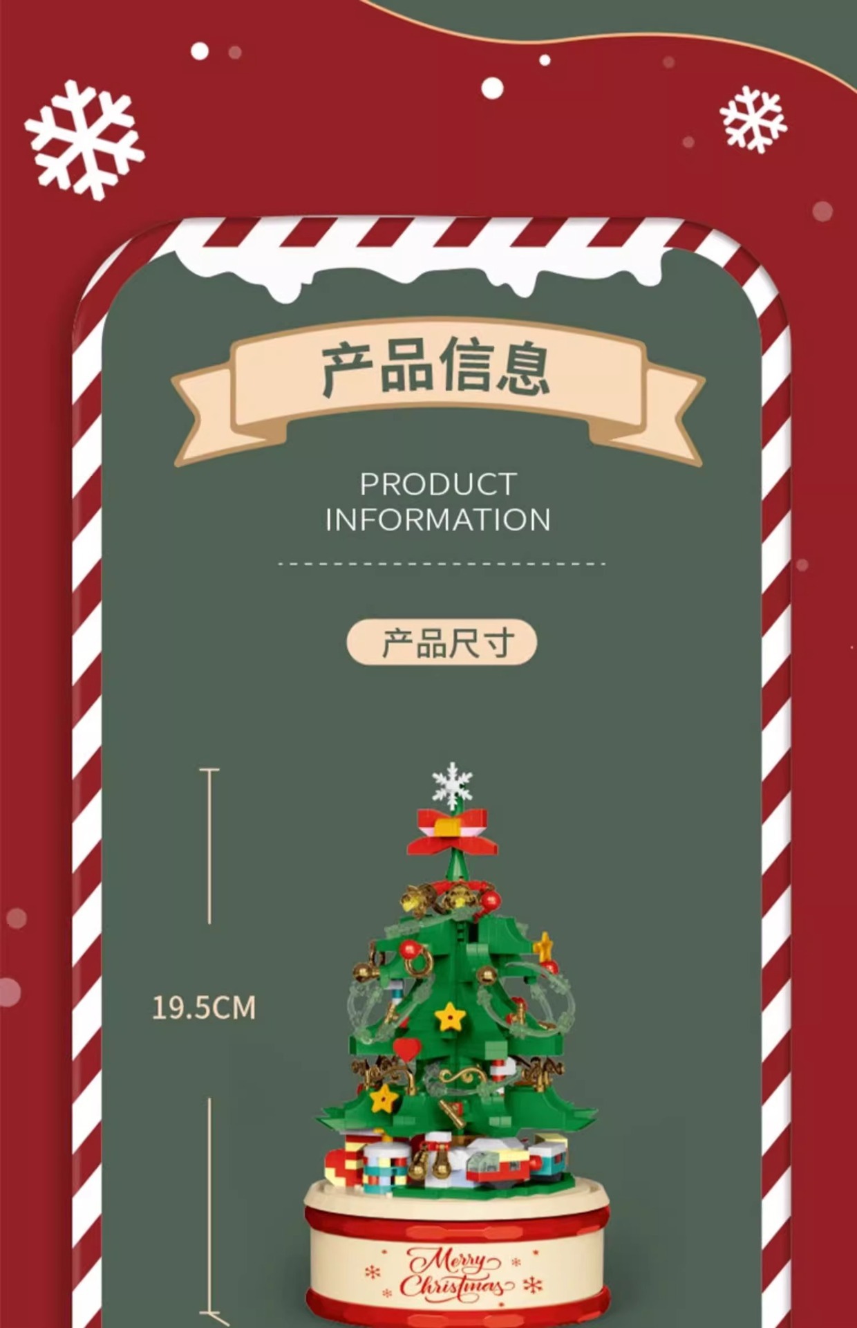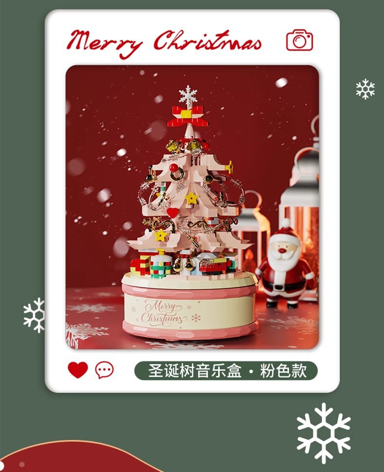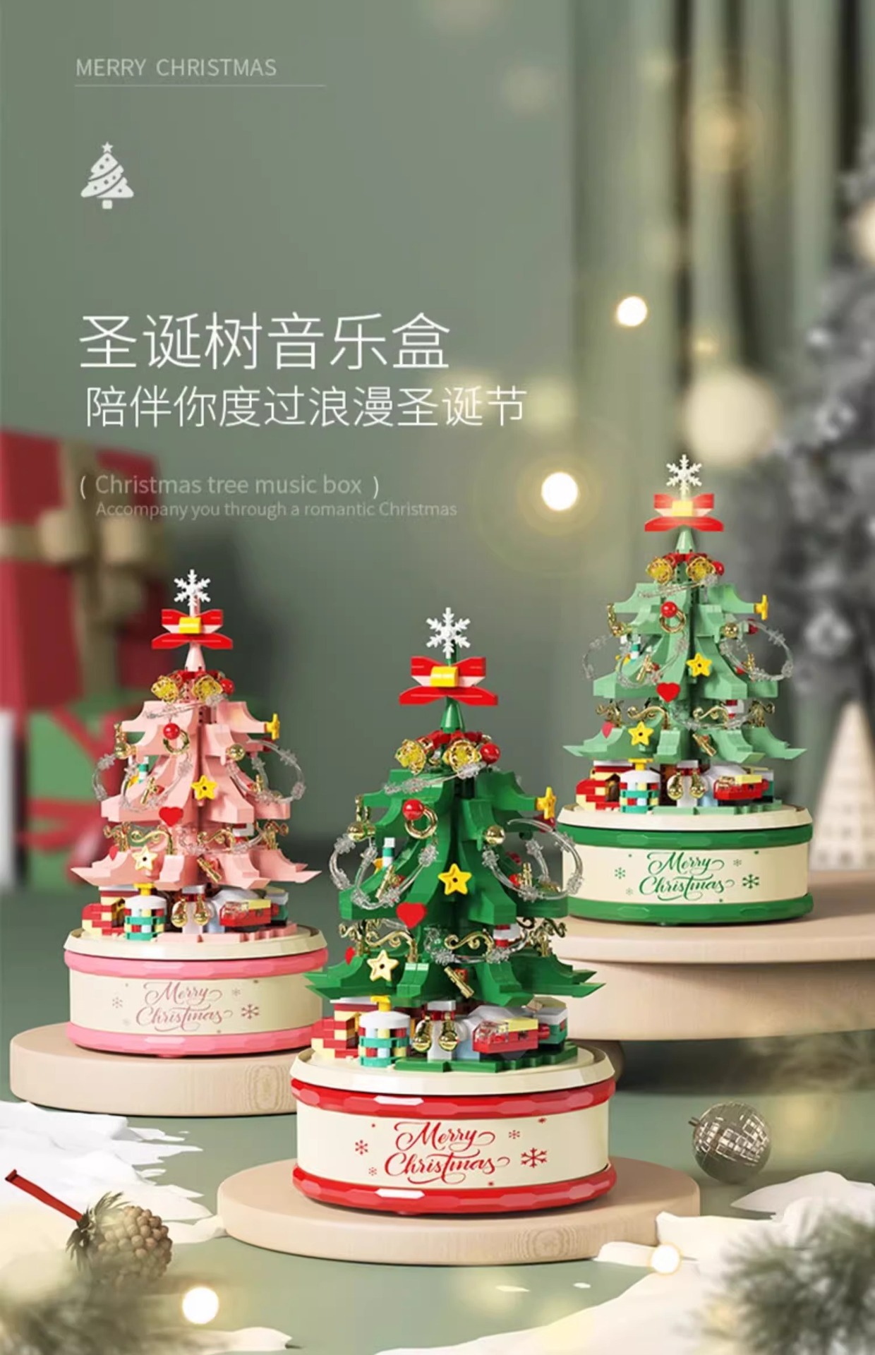 跨境圣诞节礼物圣诞树音乐盒摆件儿童兼容乐高玩具女孩八音盒配批