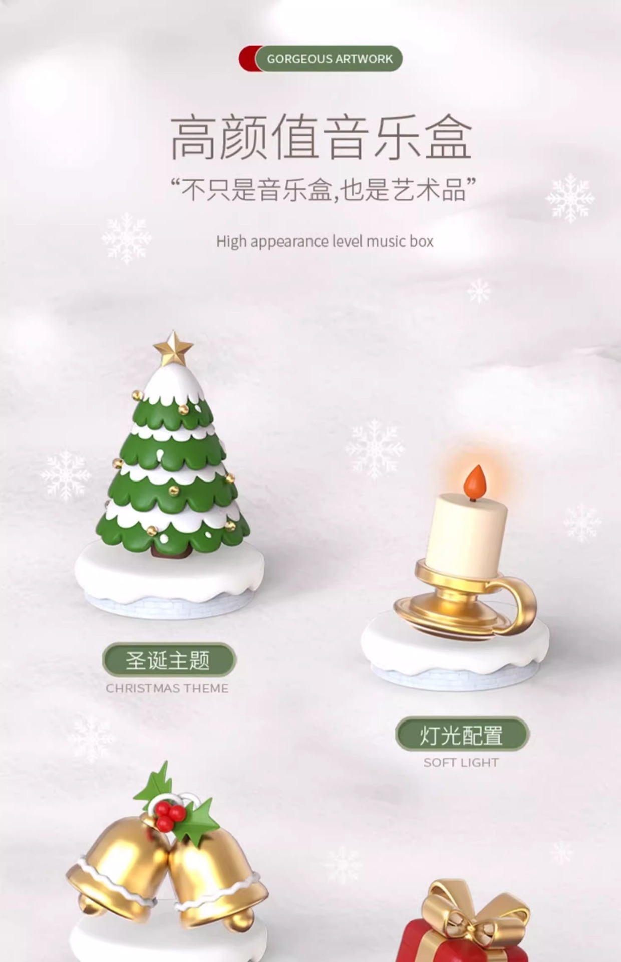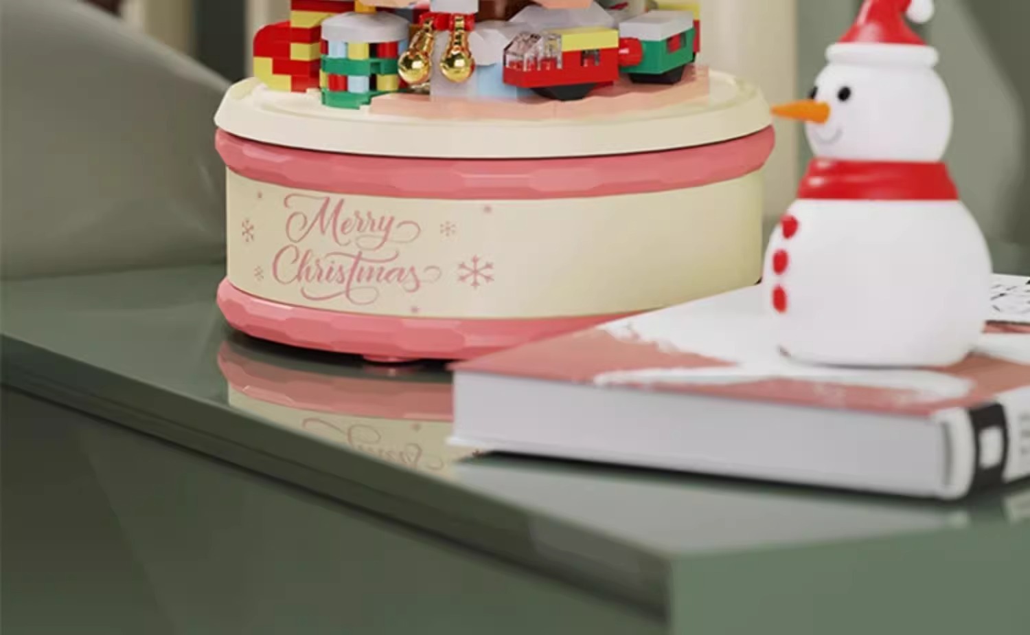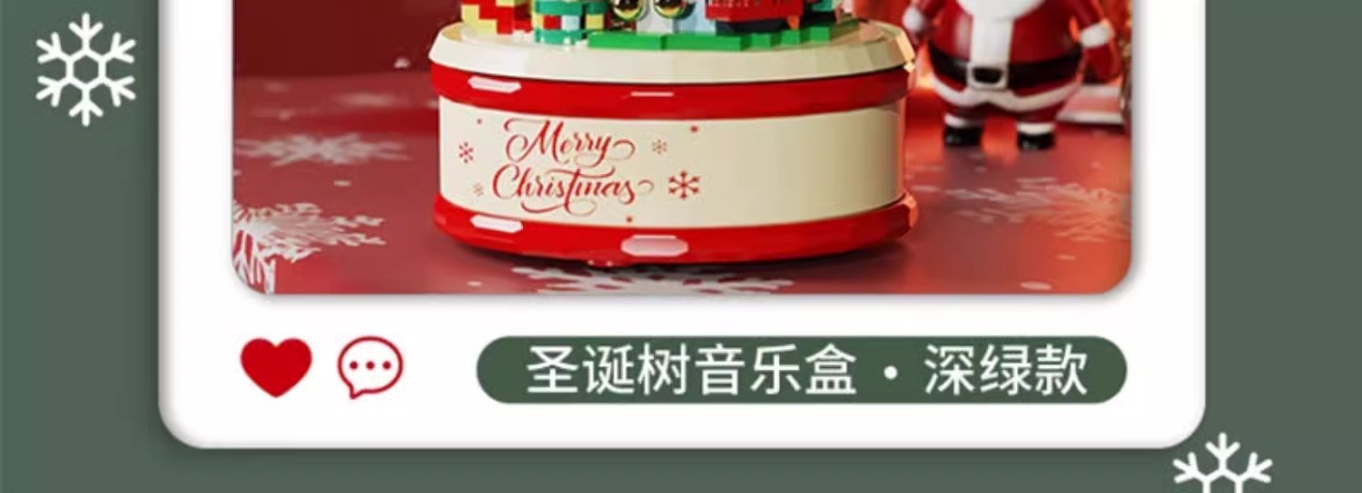 跨境圣诞节礼物圣诞树音乐盒摆件儿童兼容乐高玩具女孩八音盒配批