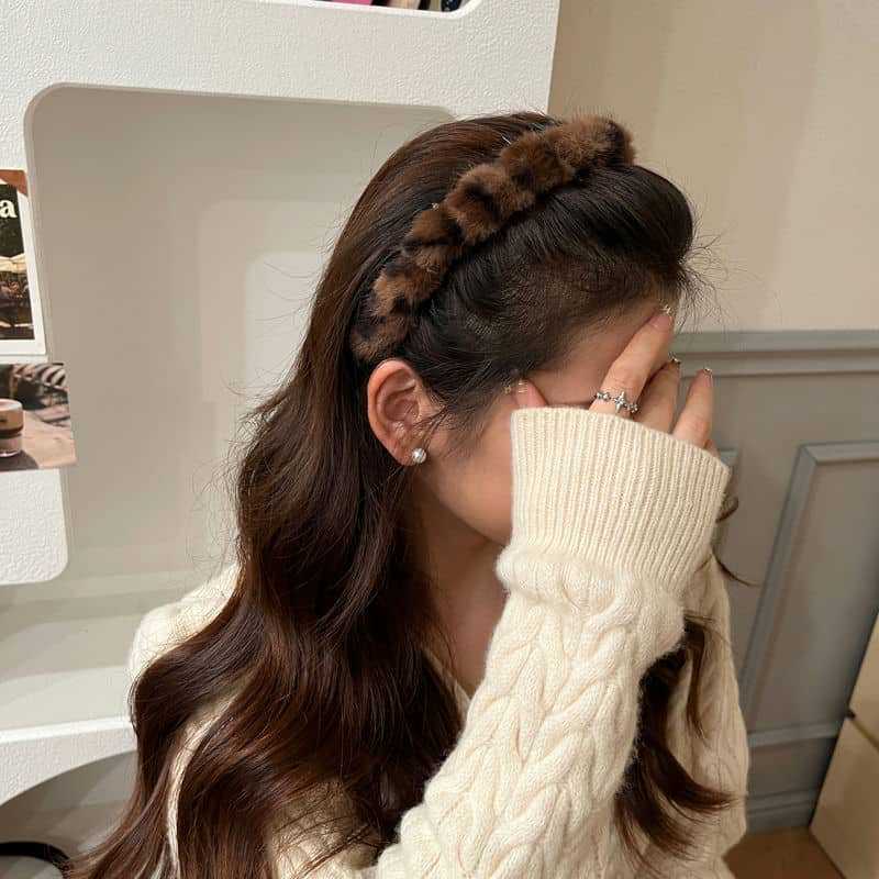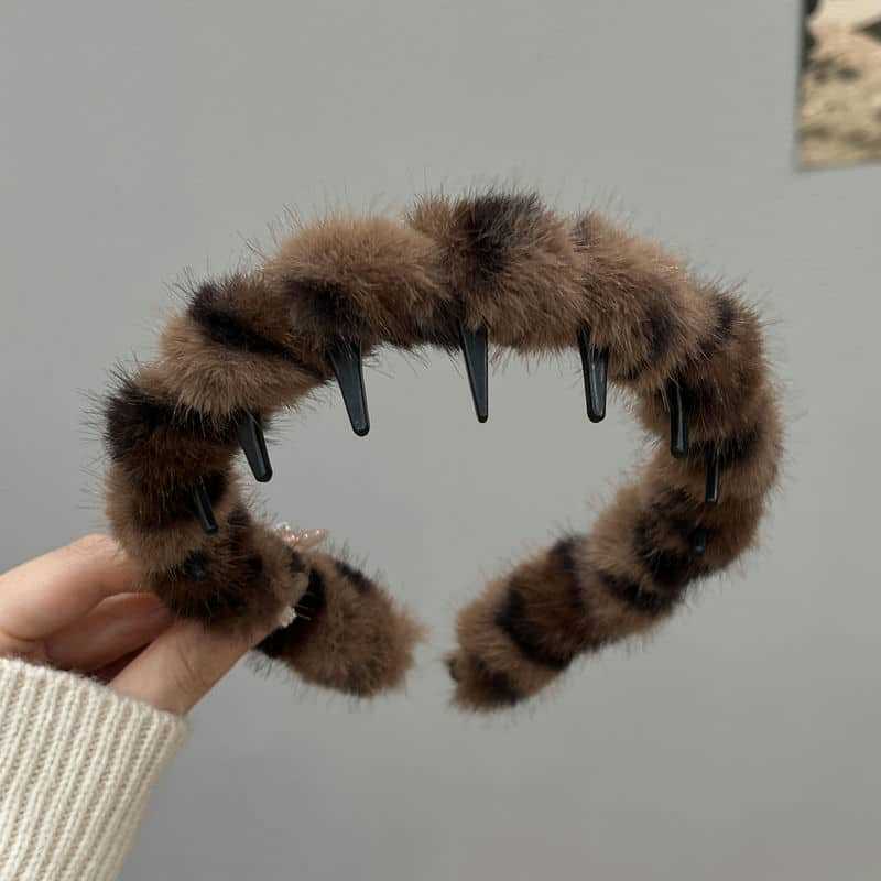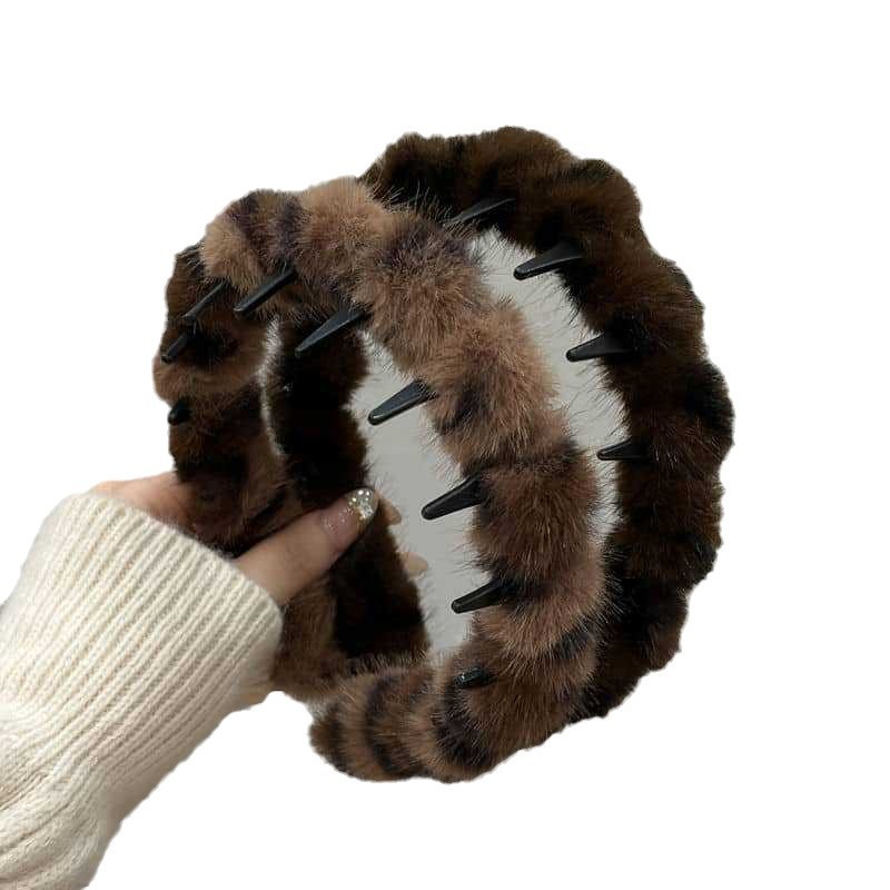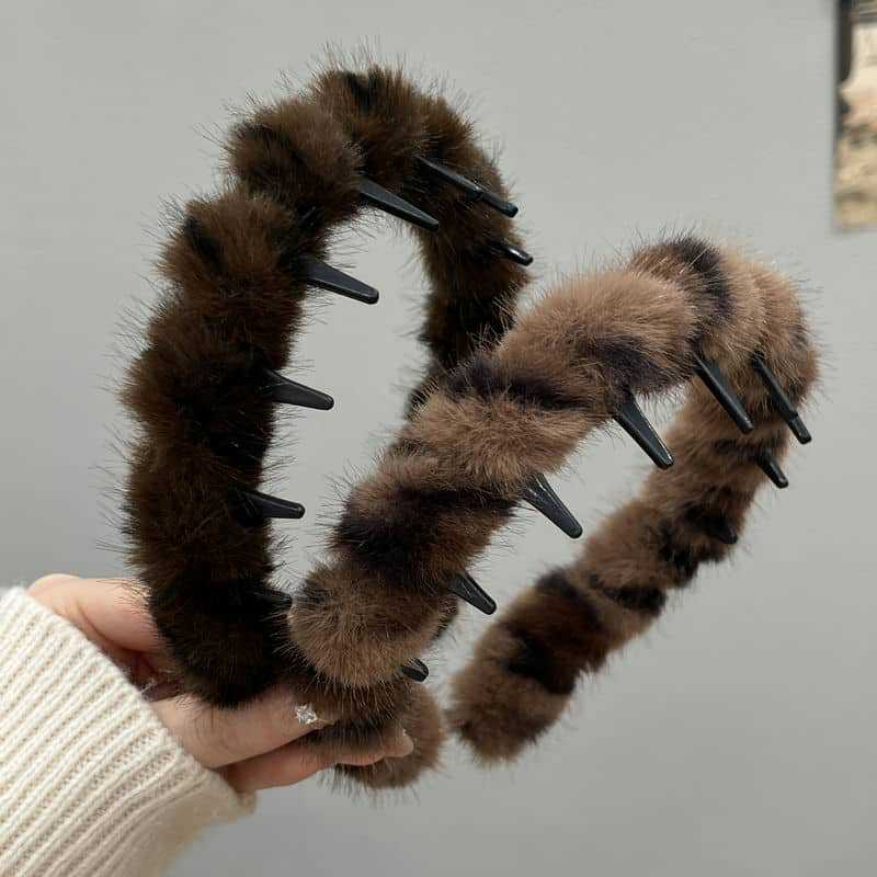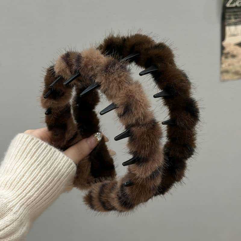 韩系复古豹纹带齿毛绒发箍女防滑洗脸发卡2024年秋冬化妆发饰头箍