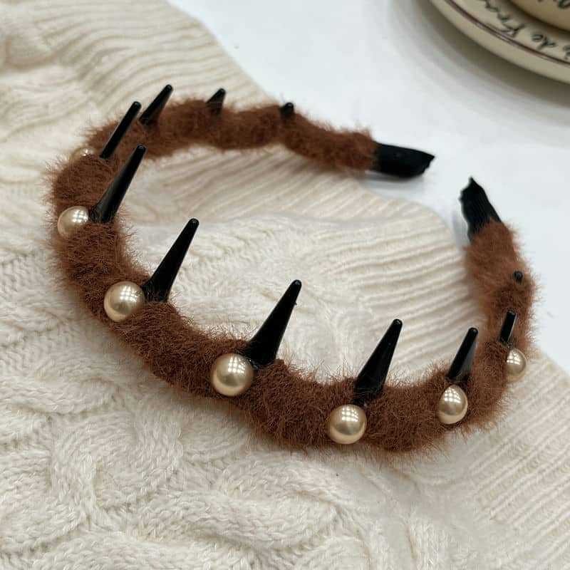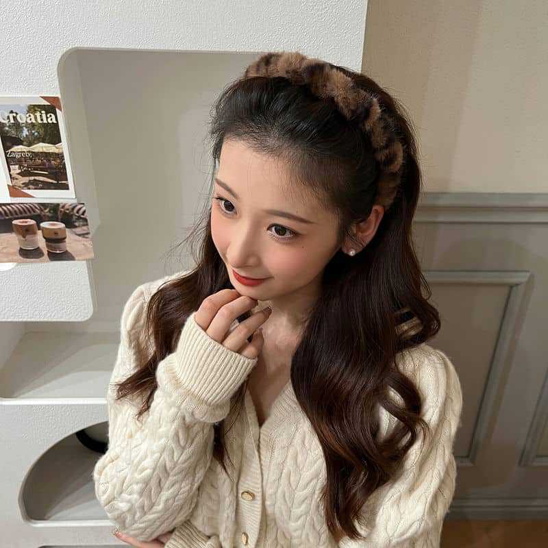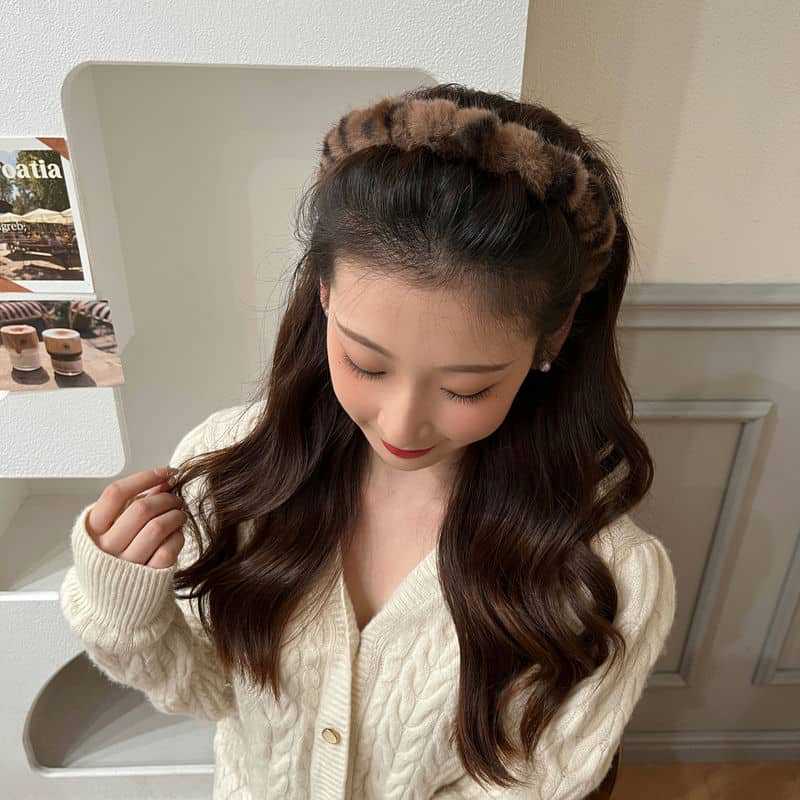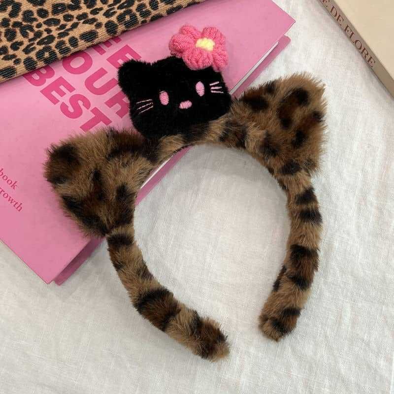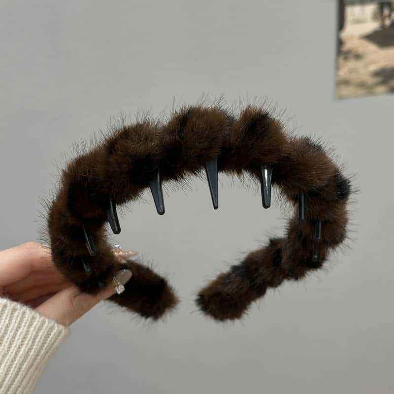 韩系复古豹纹带齿毛绒发箍女防滑洗脸发卡2024年秋冬化妆发饰头箍