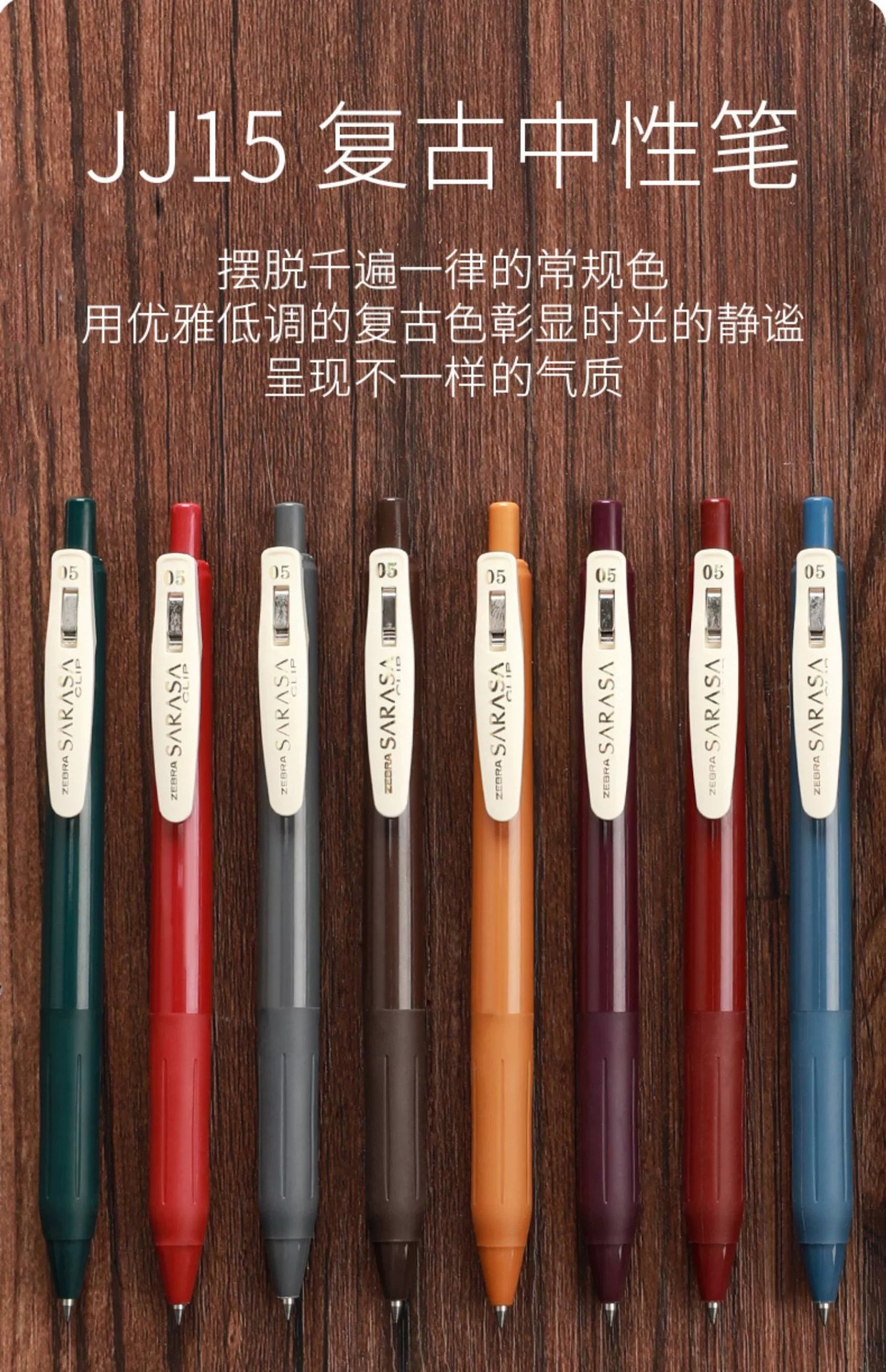 日本ZEBRA斑马JJ15复古笔日系SARASA按动彩色中性笔书写多色水笔