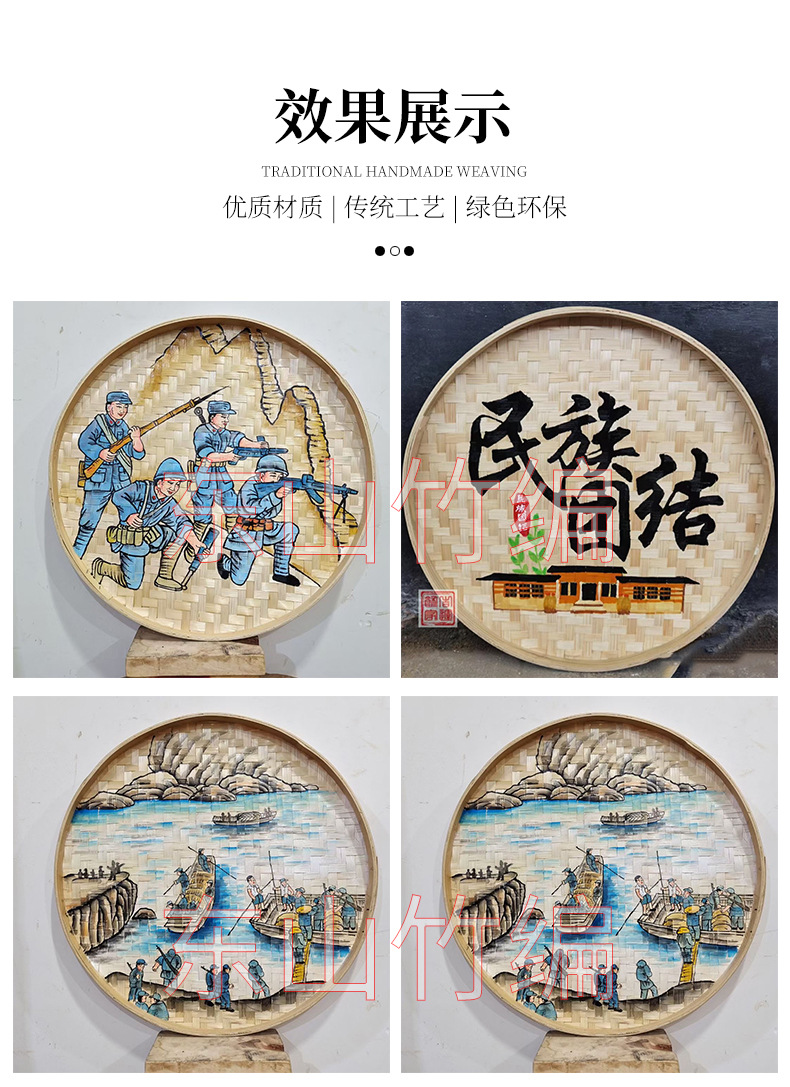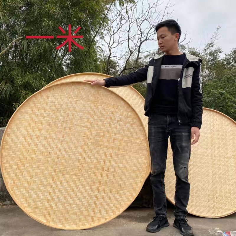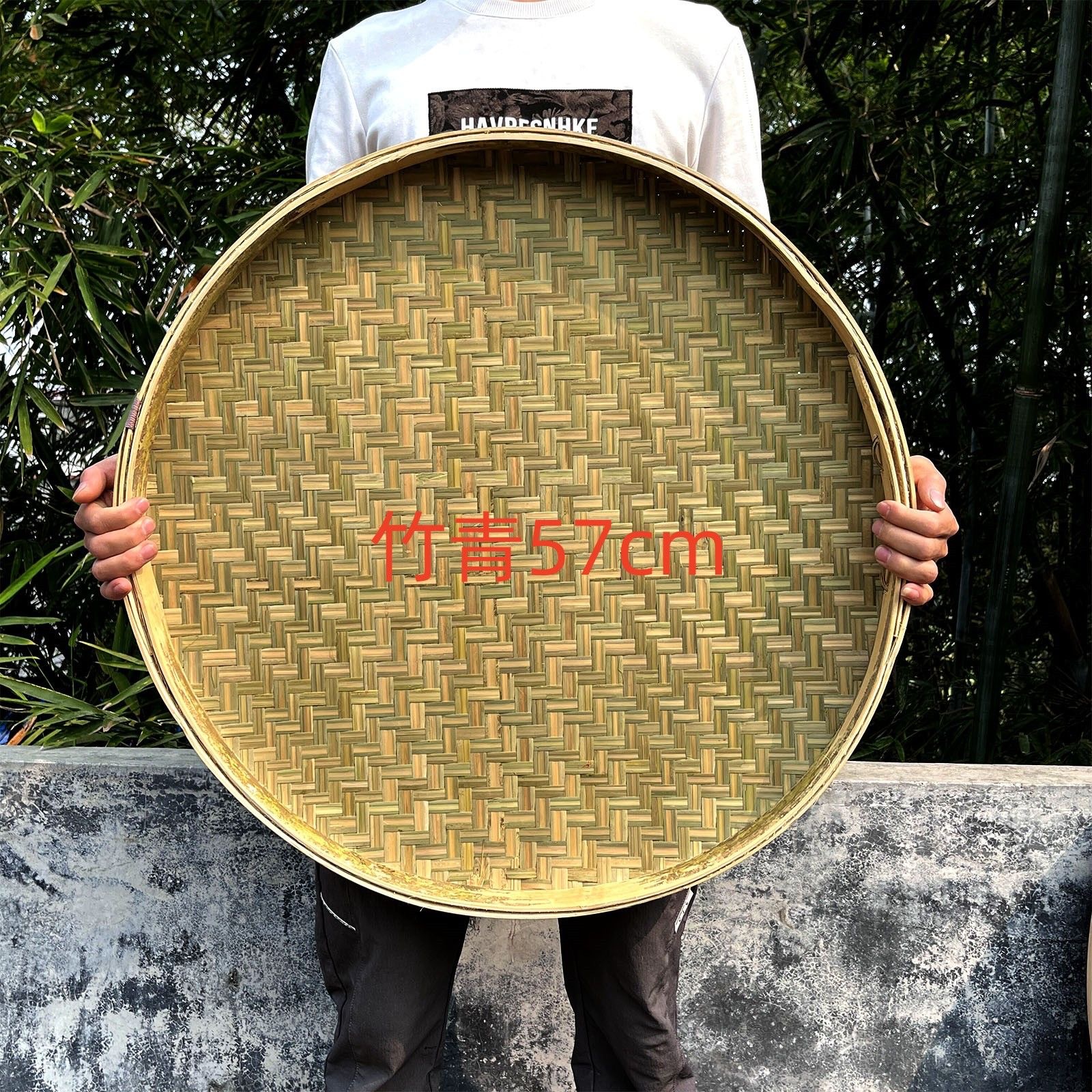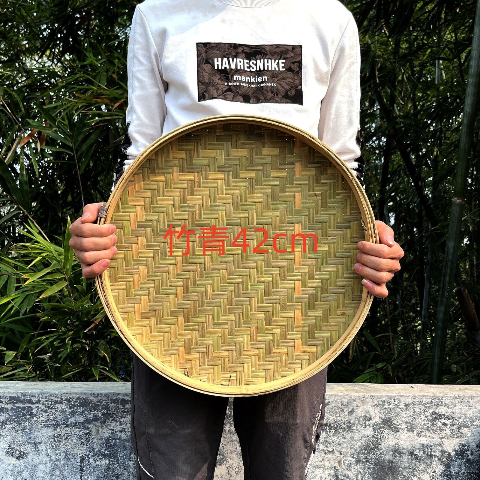 竹编簸箕圆形竹筛子绘画圆筛晾晒盘创意装饰平盖手工编织厂家批发