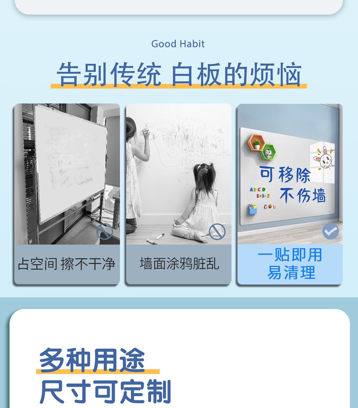 黑板墙贴家用幼儿童可移除不伤墙磁性写字板画画涂鸦无尘贴纸画板