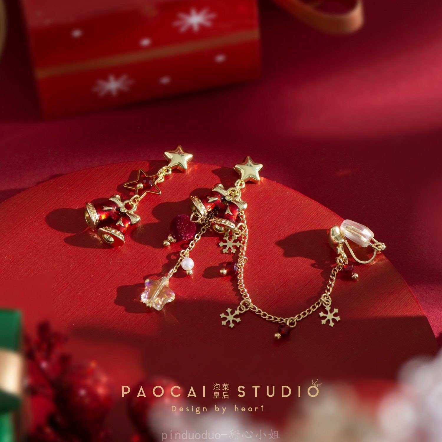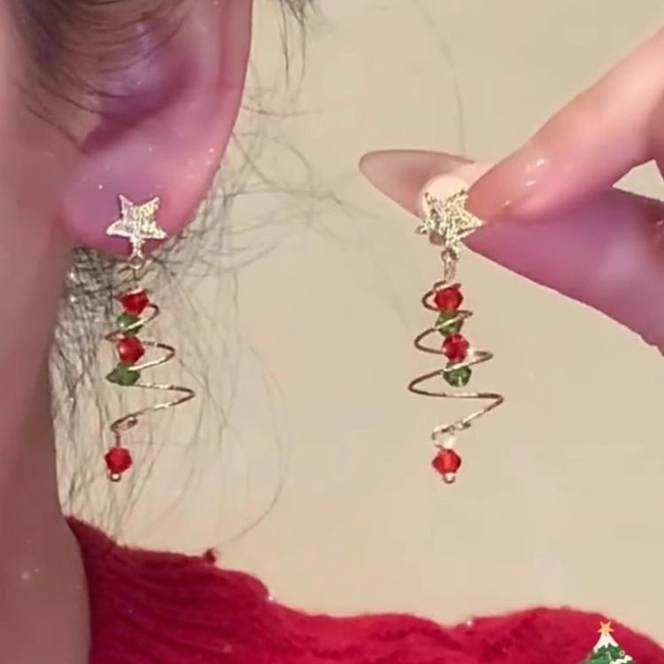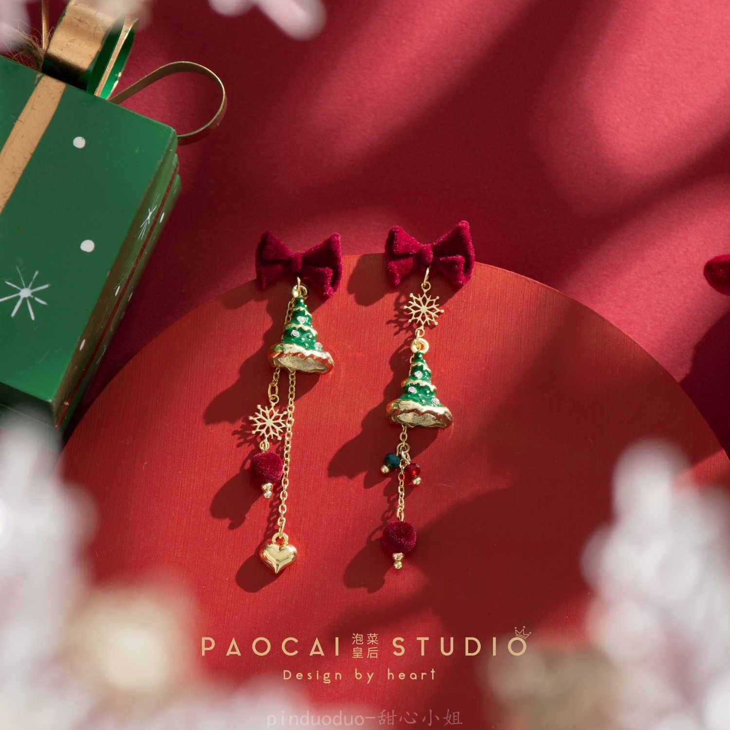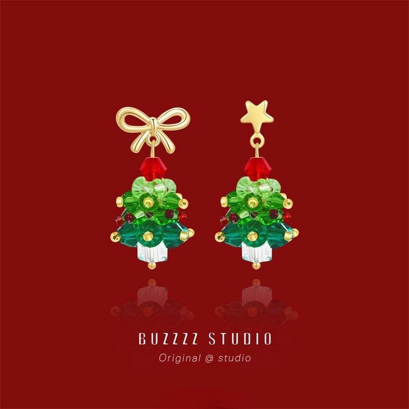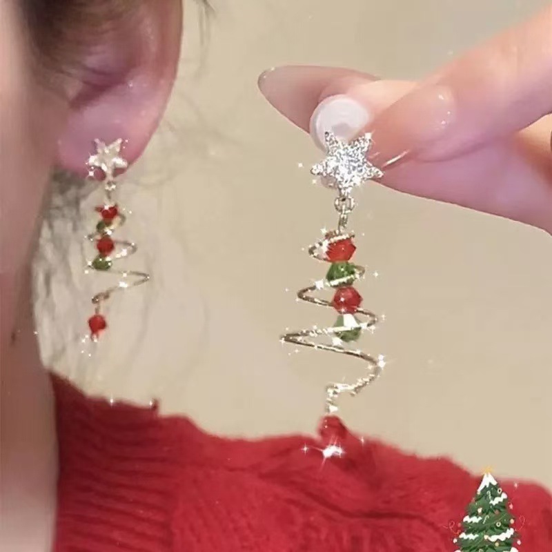 立体圣诞树耳钉甜美可爱圣诞节耳饰新年礼物耳环无耳洞耳夹女批发