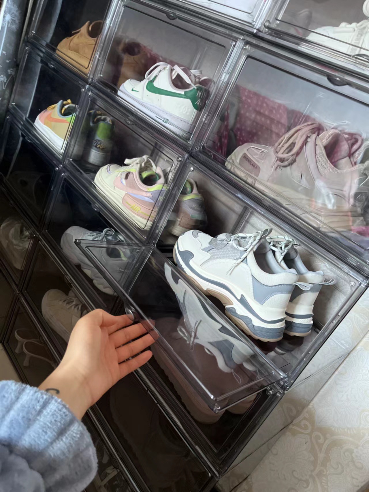 批发透明鞋盒亚克力鞋盒带盖磁吸侧开门鞋子收纳盒鞋盒AJ球鞋收纳