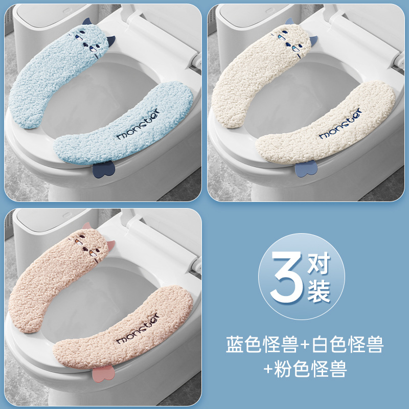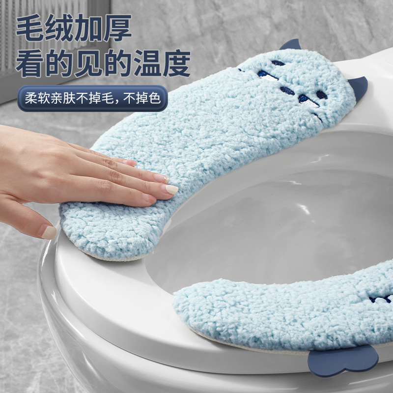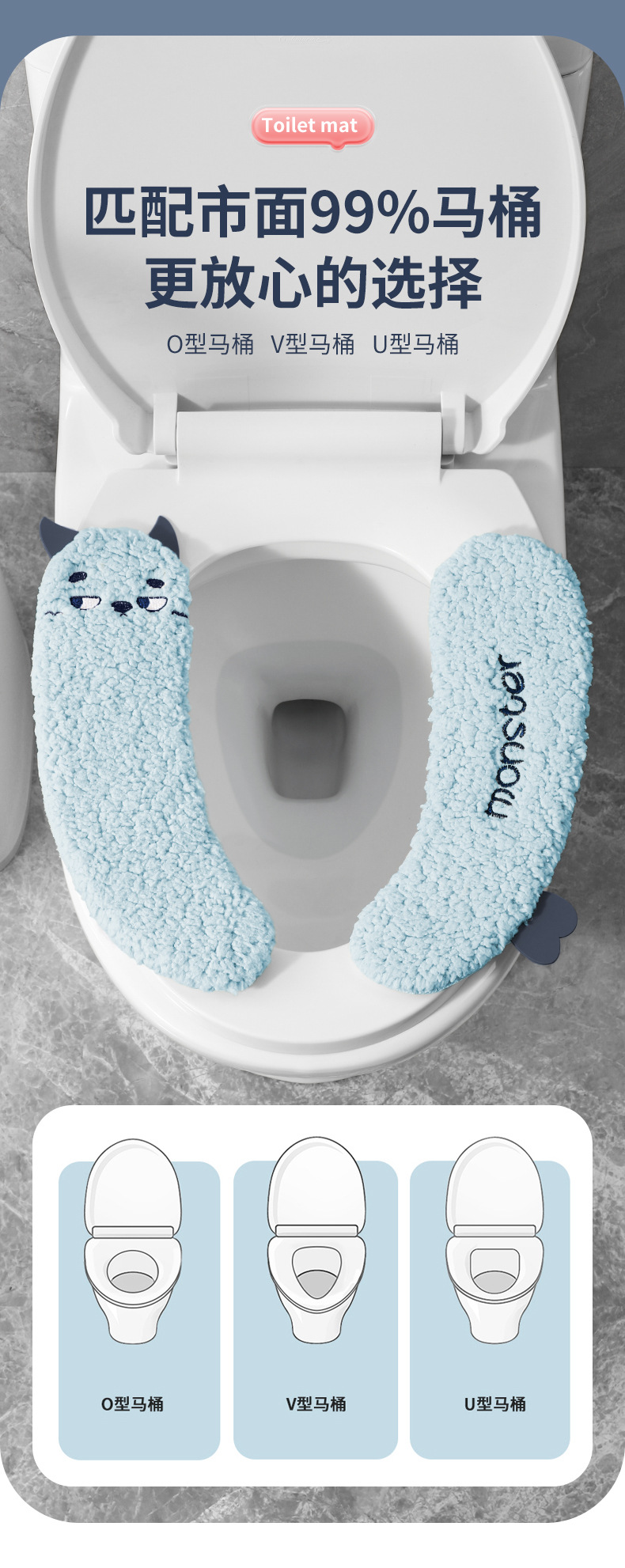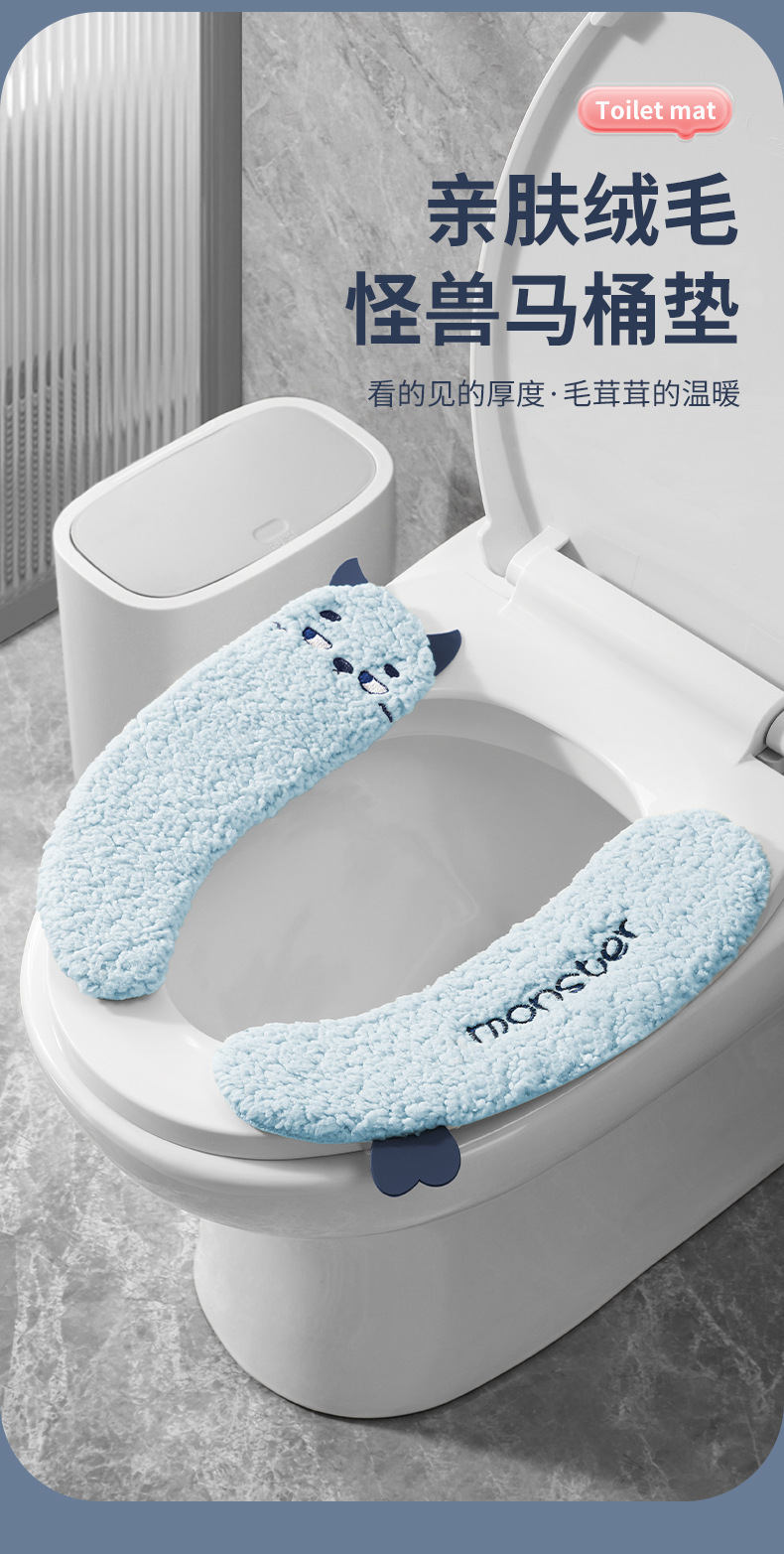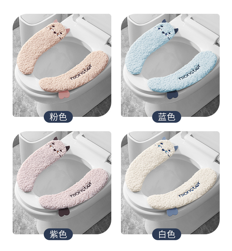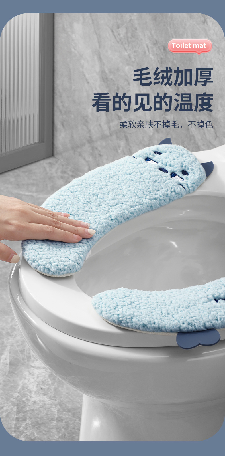 JS卡通毛绒马桶垫家用卫生间厕所粘贴式马桶坐垫冬天加厚保暖垫子