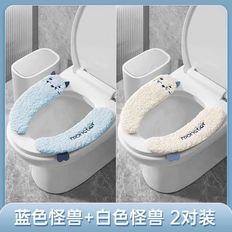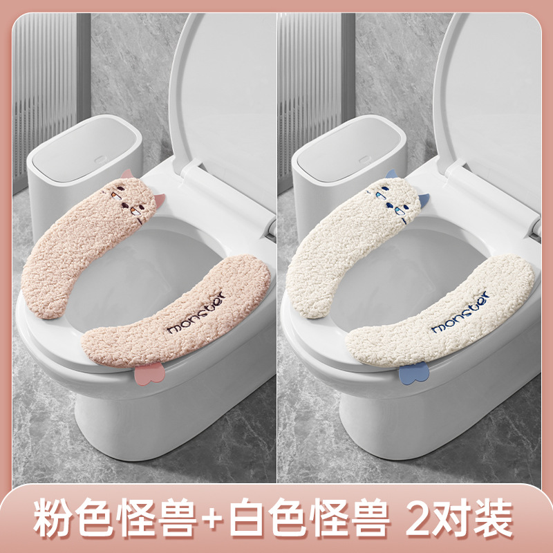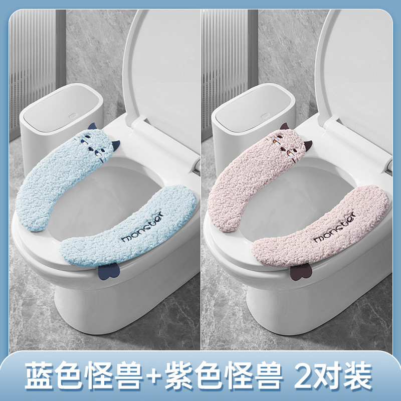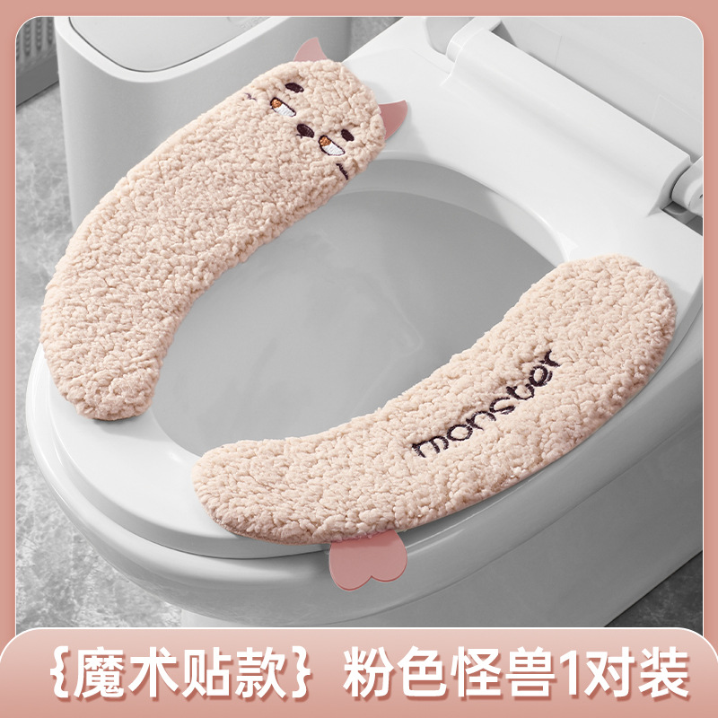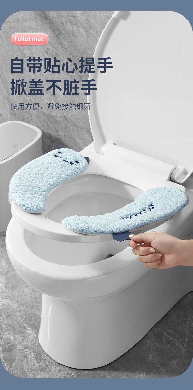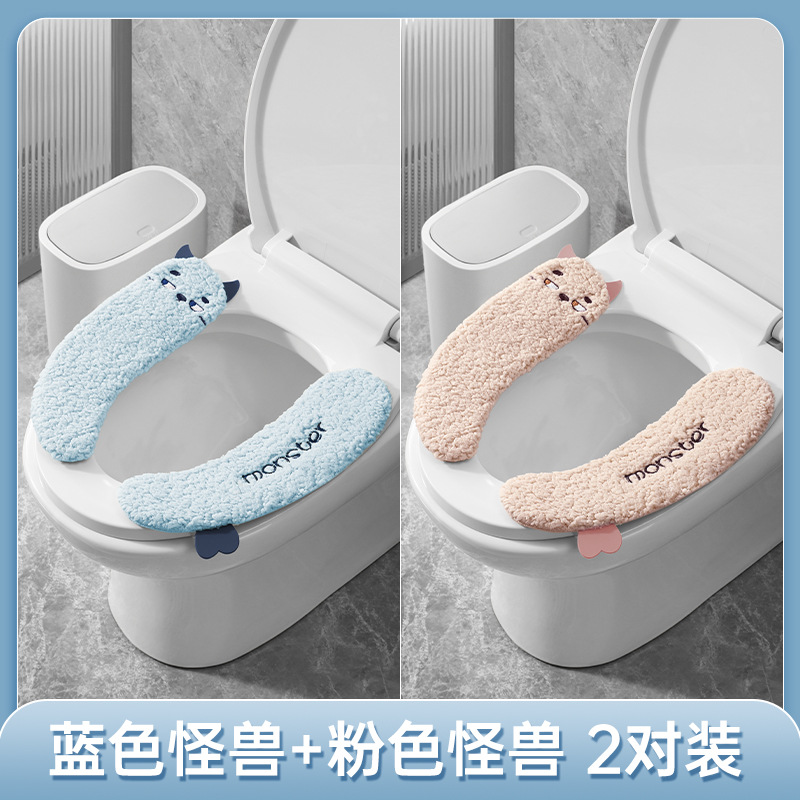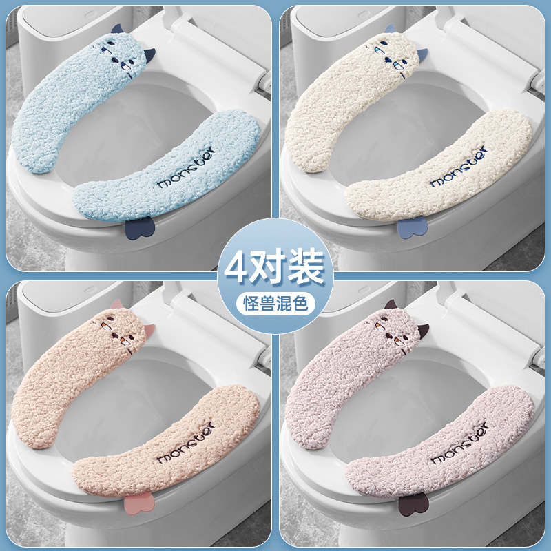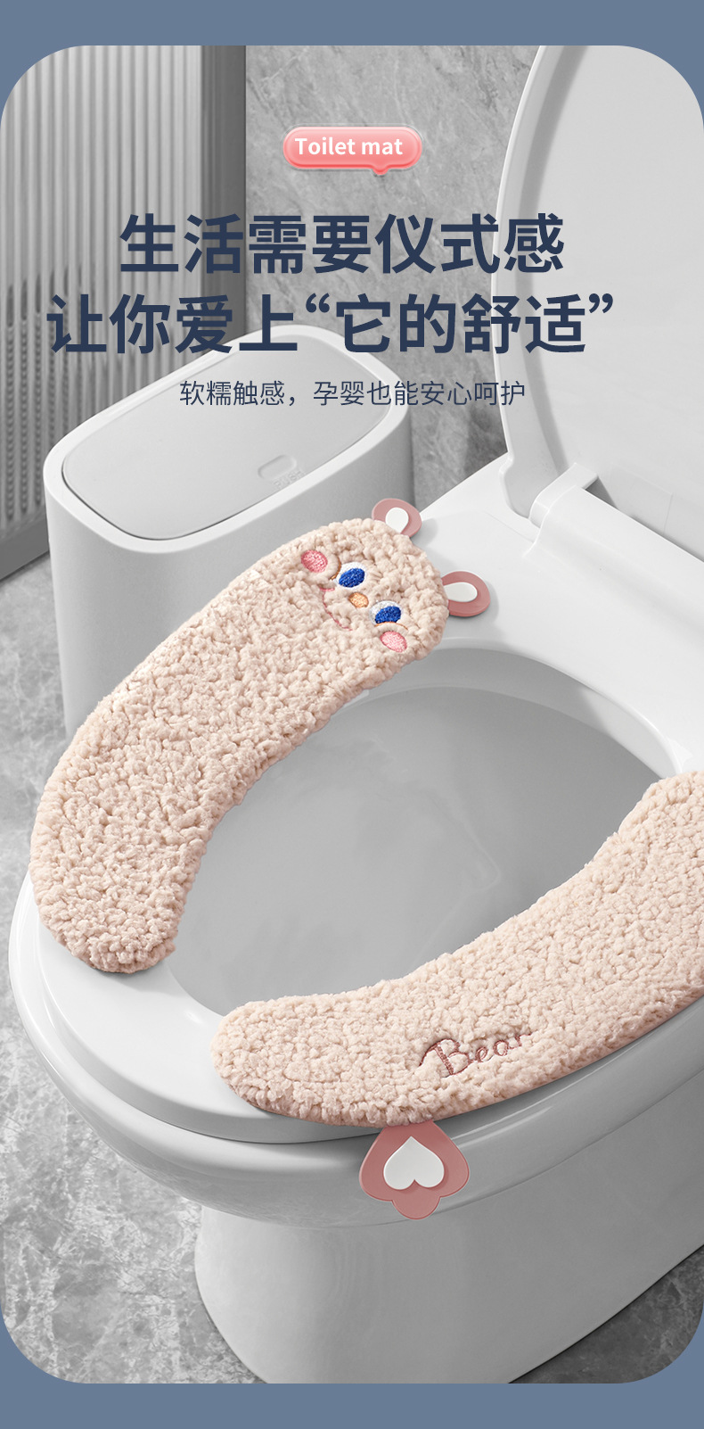 JS卡通毛绒马桶垫家用卫生间厕所粘贴式马桶坐垫冬天加厚保暖垫子