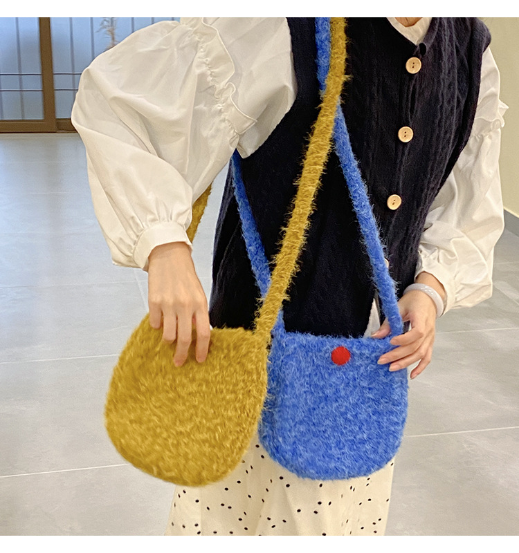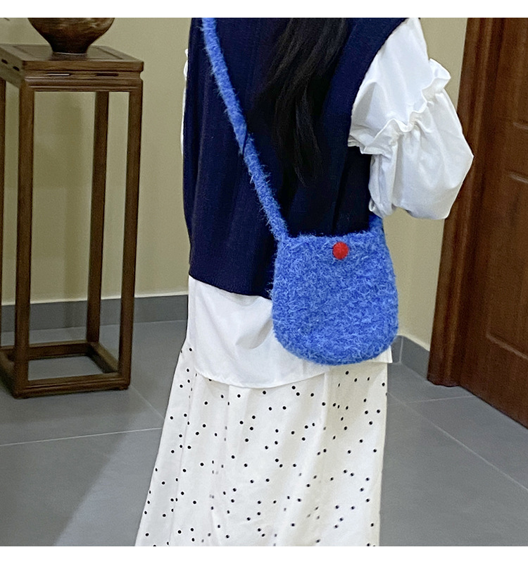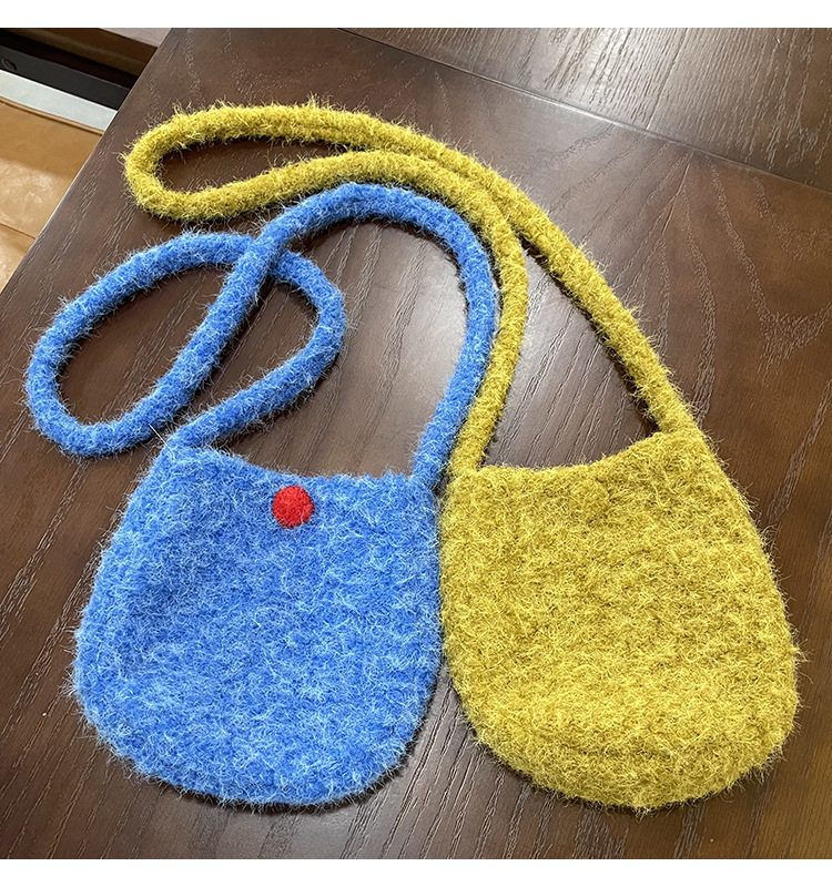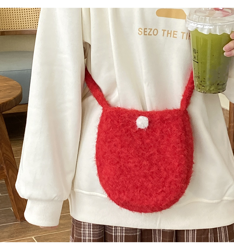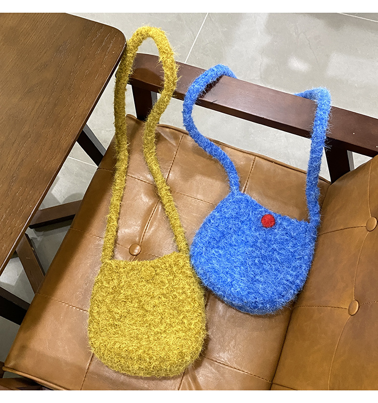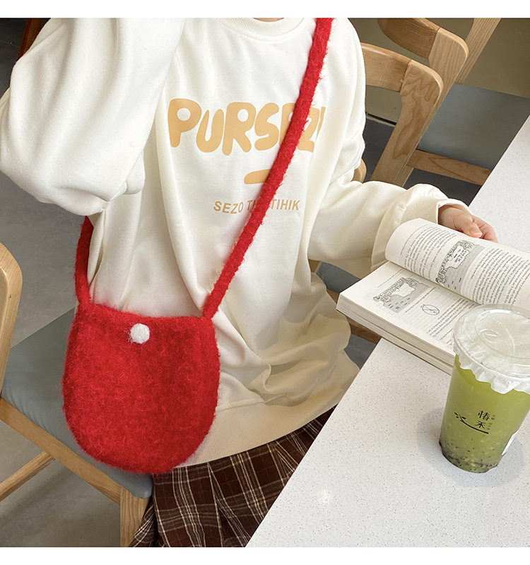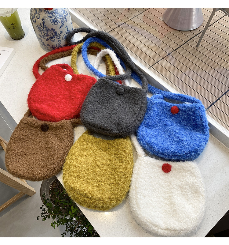 2024自制鸡蛋包包马卡龙毛绒椭圆可爱小斜挎单肩背包女ins新款