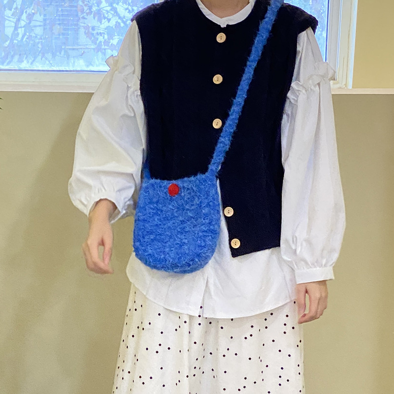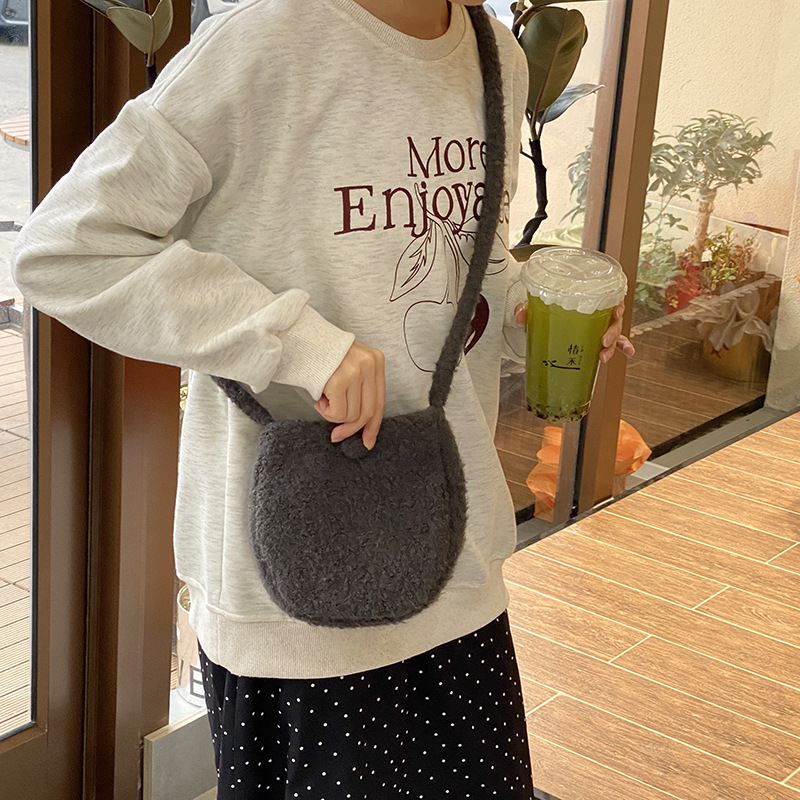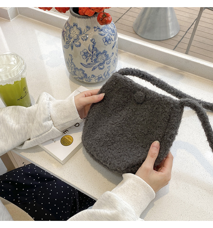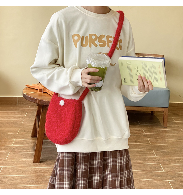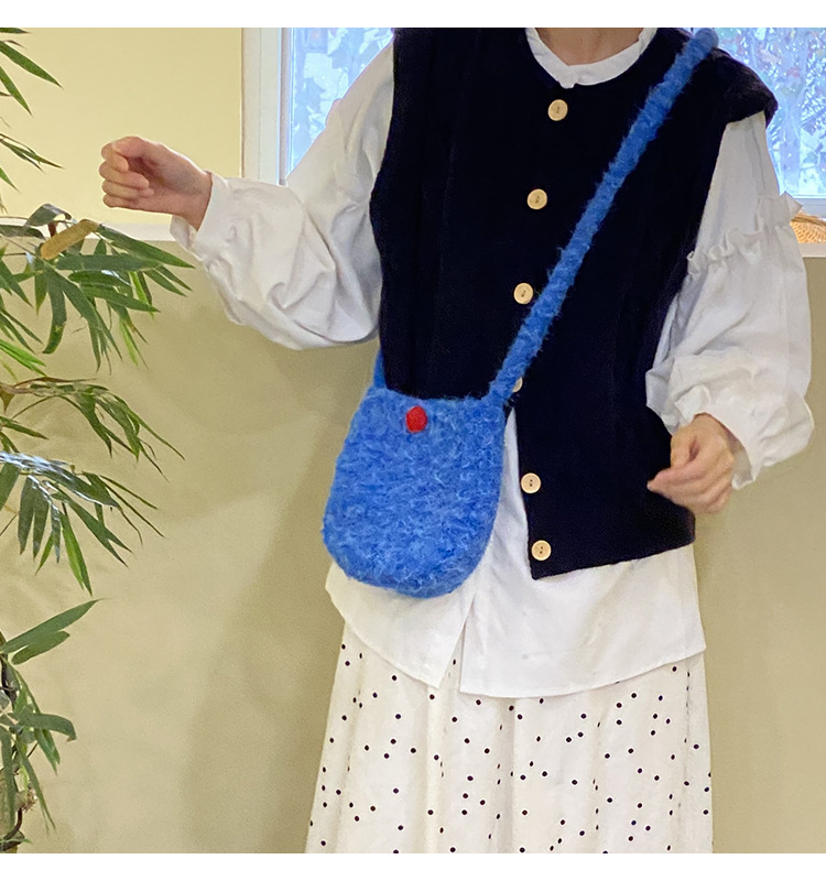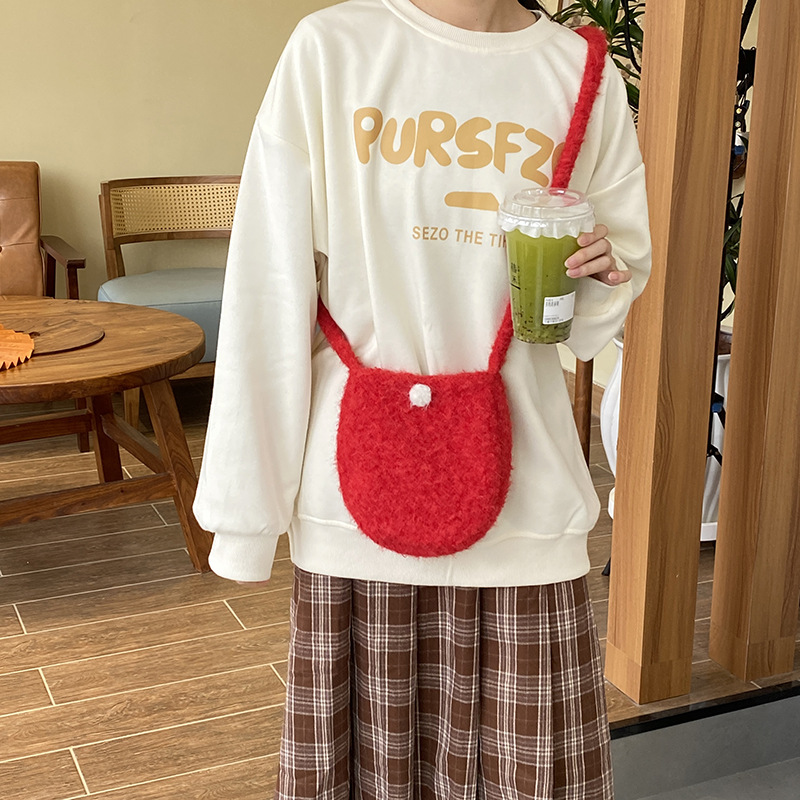 2024自制鸡蛋包包马卡龙毛绒椭圆可爱小斜挎单肩背包女ins新款