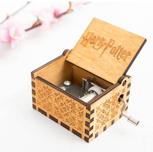 哈利波特手摇音乐盒批发摆摊工艺品摆件送礼物木质雕刻彩绘八音盒