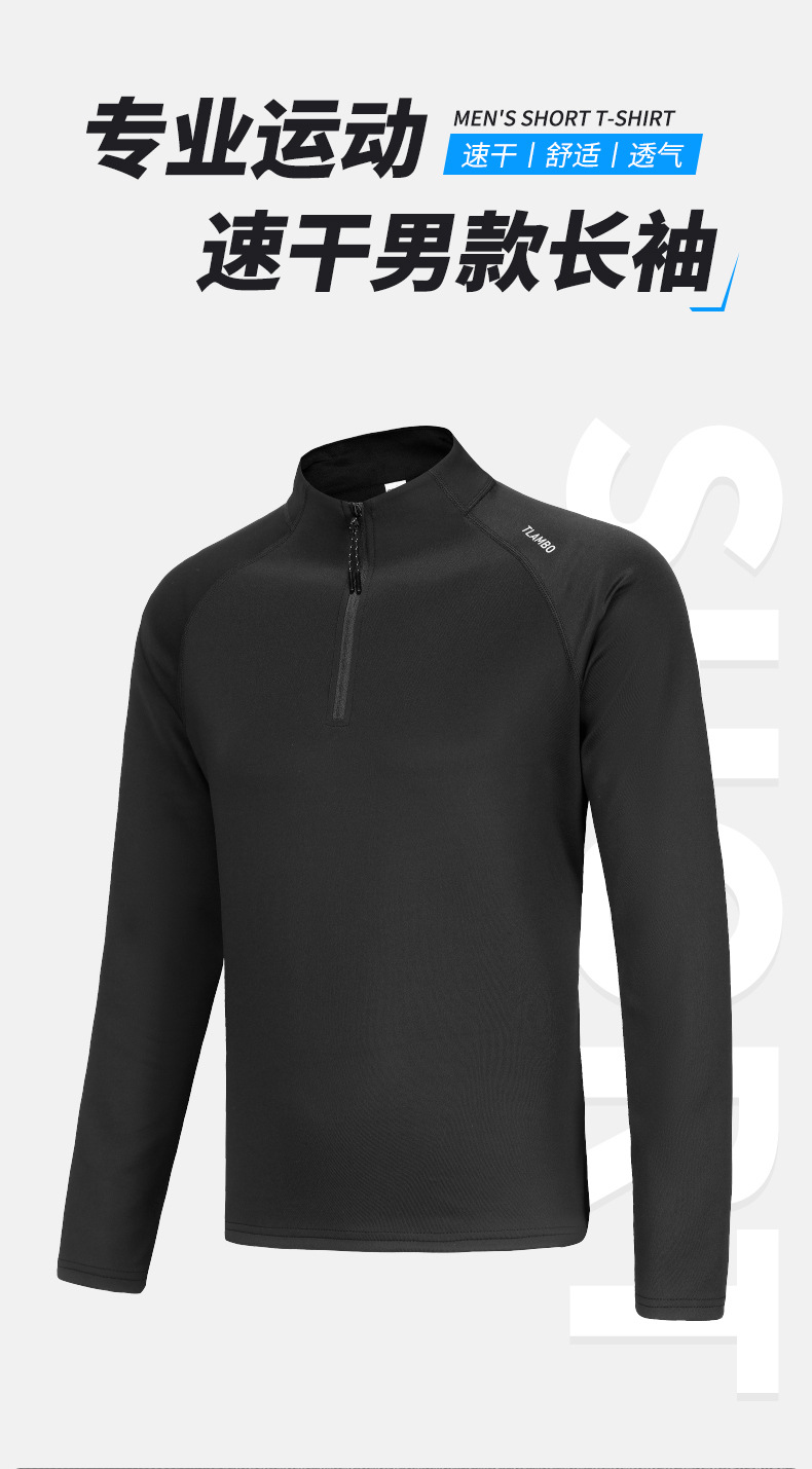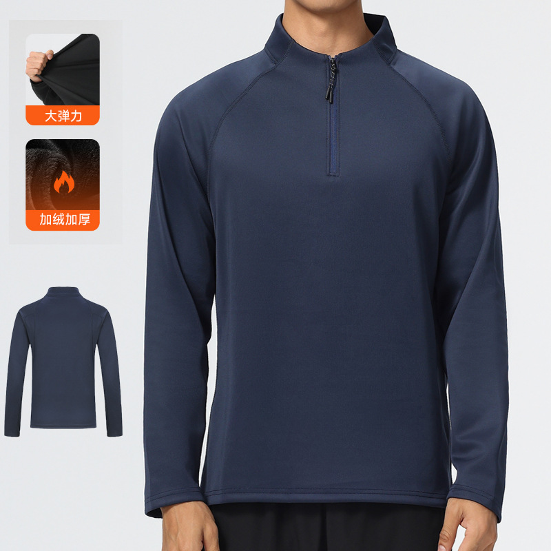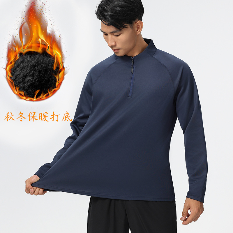 迪同款秋冬加绒打底运动T恤半拉链立领长袖男户外跑步健身篮球服
