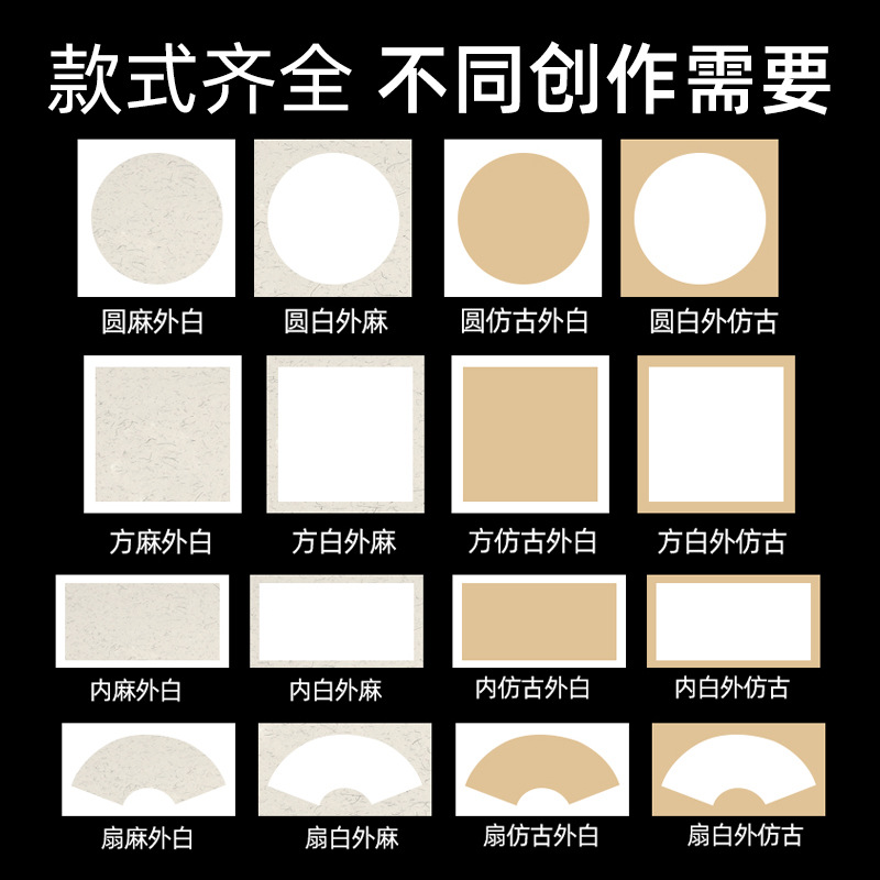 手工生宣镜片圆形宣纸半生半熟加厚国画麻纸工笔画书法软卡纸10张